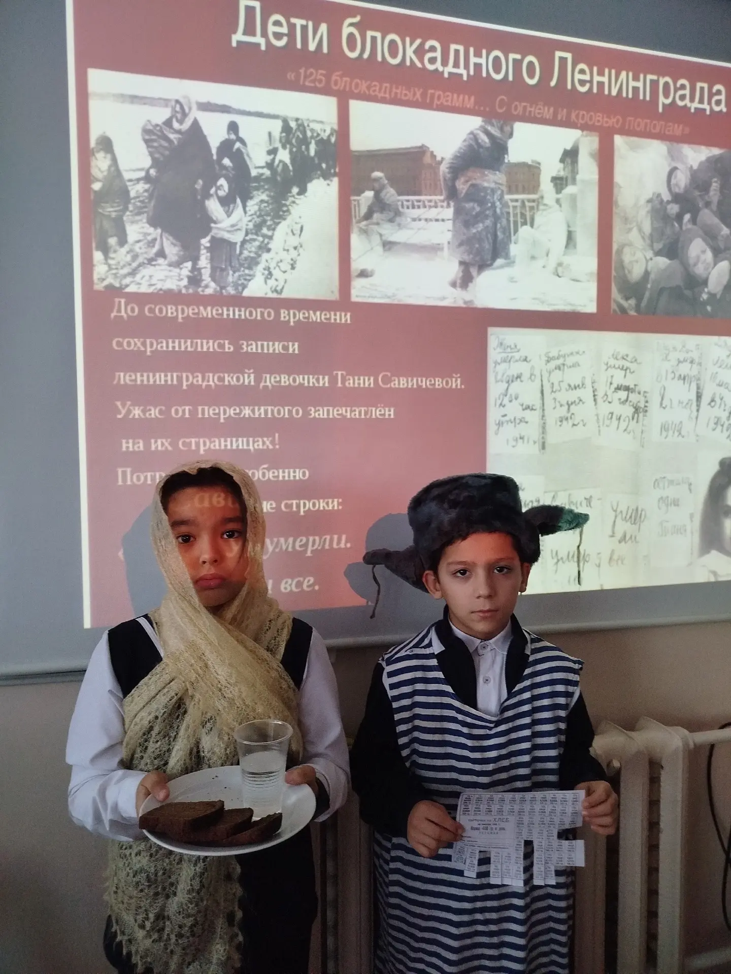 Ученики МБУ «Школа №46» из движения «Орлята России» почтили память блокадного Ленинграда. В этот важный день мы создали небольшую композицию, отражающую атмосферу тех тяжелых лет. Мы переоделись в костюмы того времени, чтобы лучше понять и почувствовать, что пережили люди в те страшные дни.
