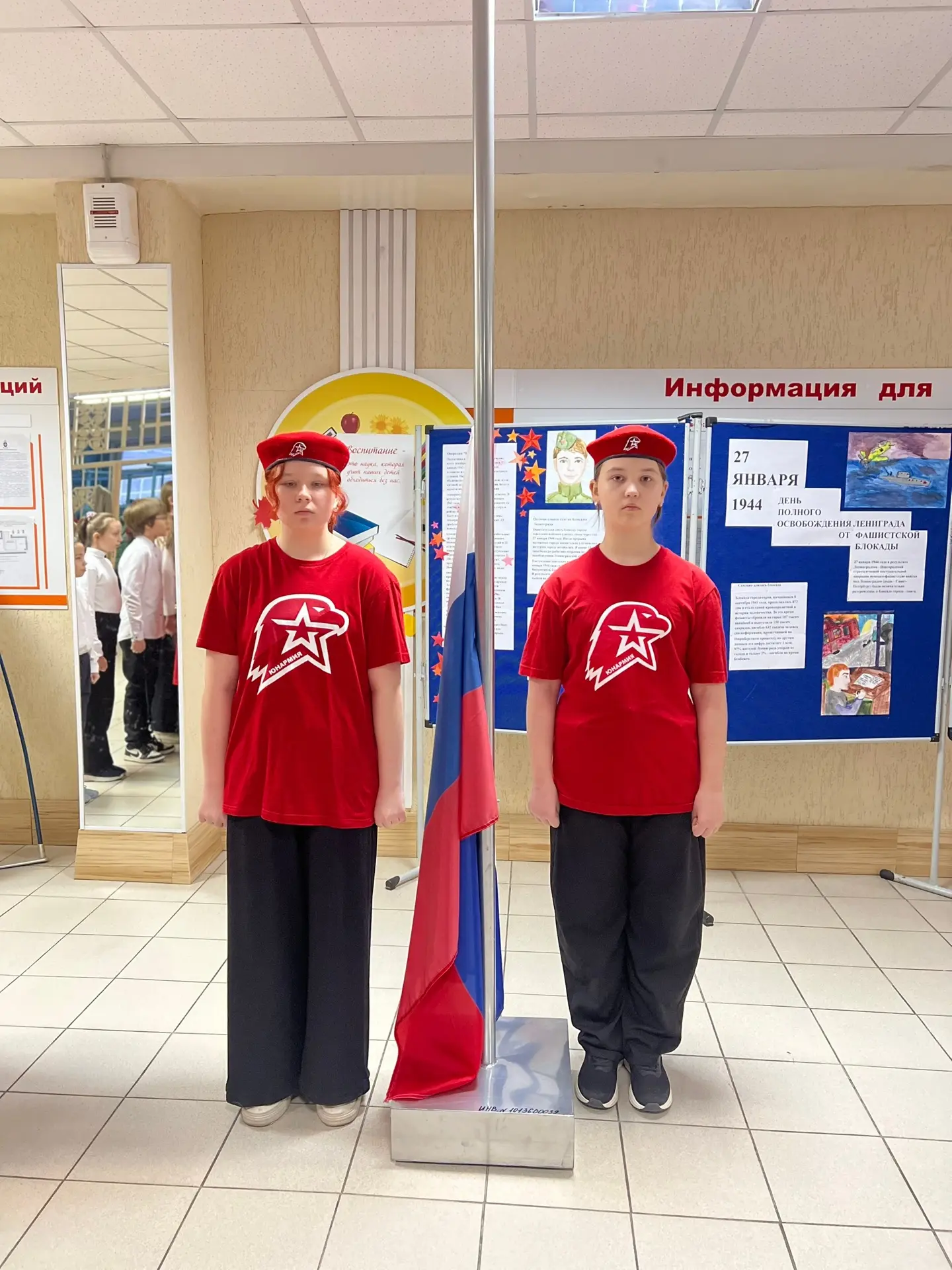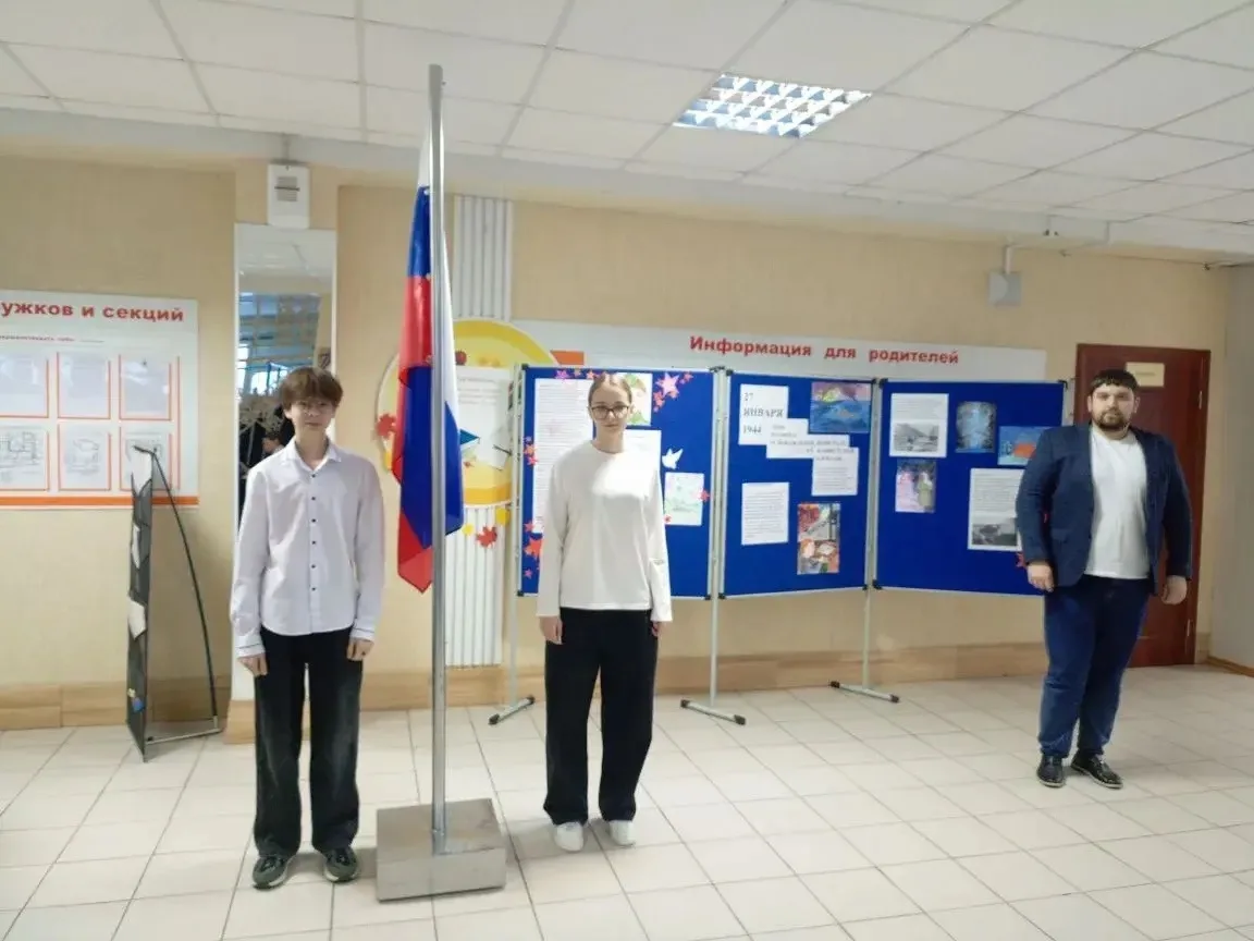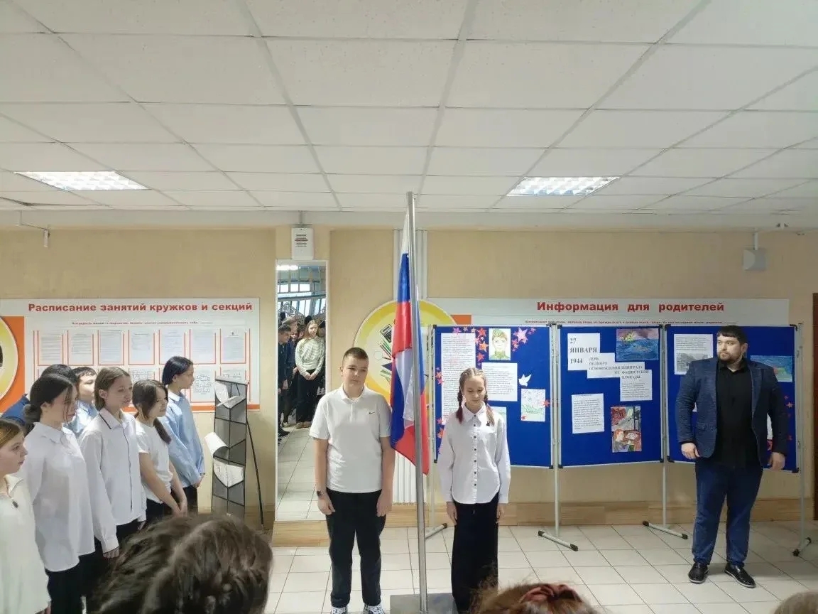 Сегодня утром в нашей школе прошла торжественная линейка и церемония поднятия Государственного флага. Этот день мы посвятили памяти одной из самых героических страниц истории нашей страны — 27 января 1944 года.