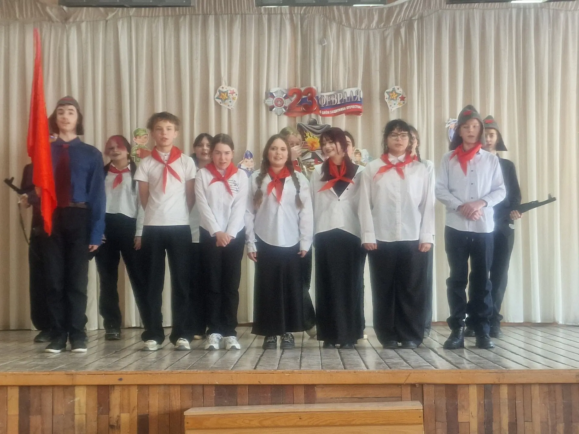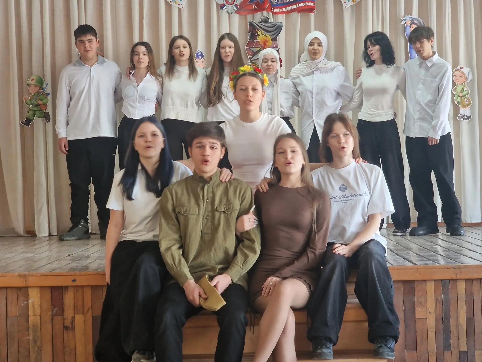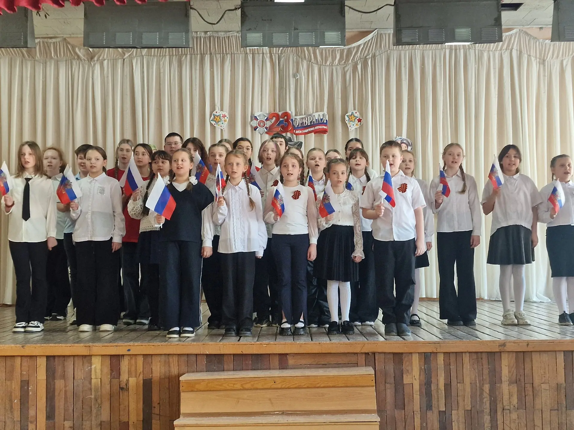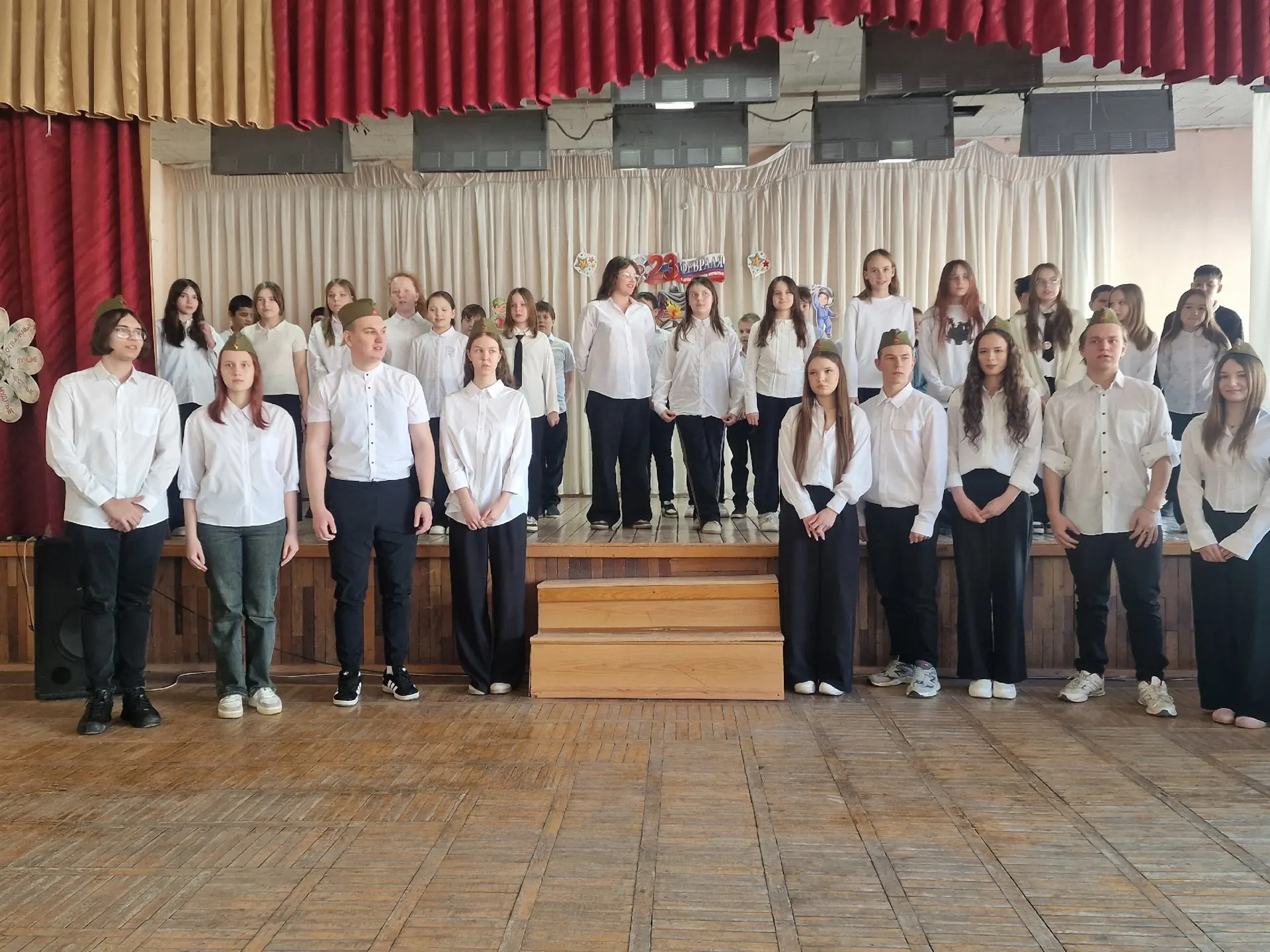 В канун 23 февраля в школе прошел фестиваль патриотической песни "Свято чтим героев имена", приуроченный Дню защитника Отечества.