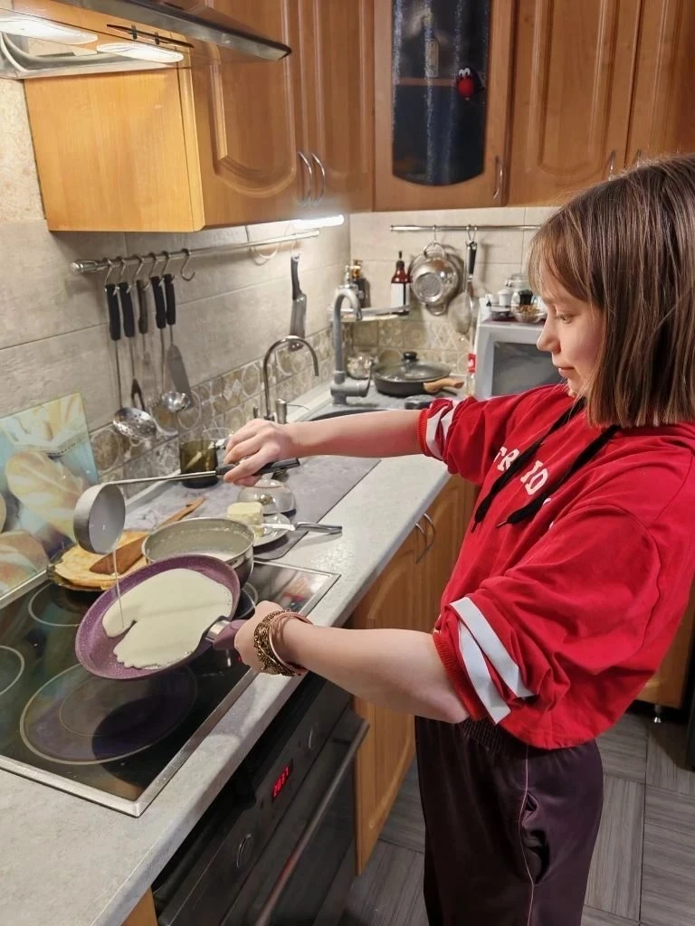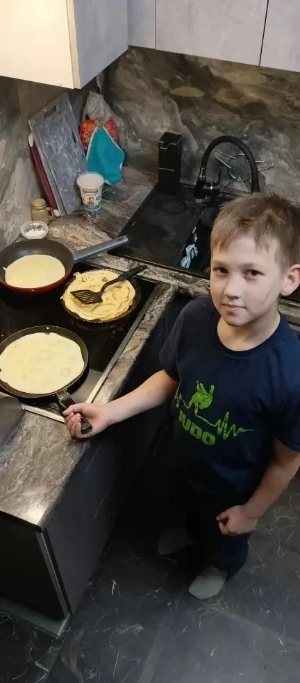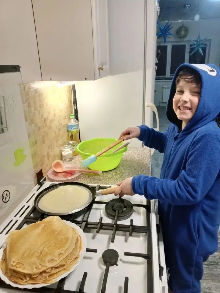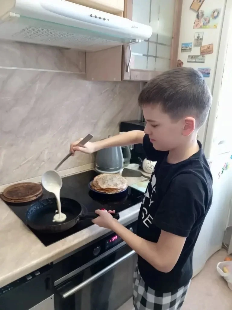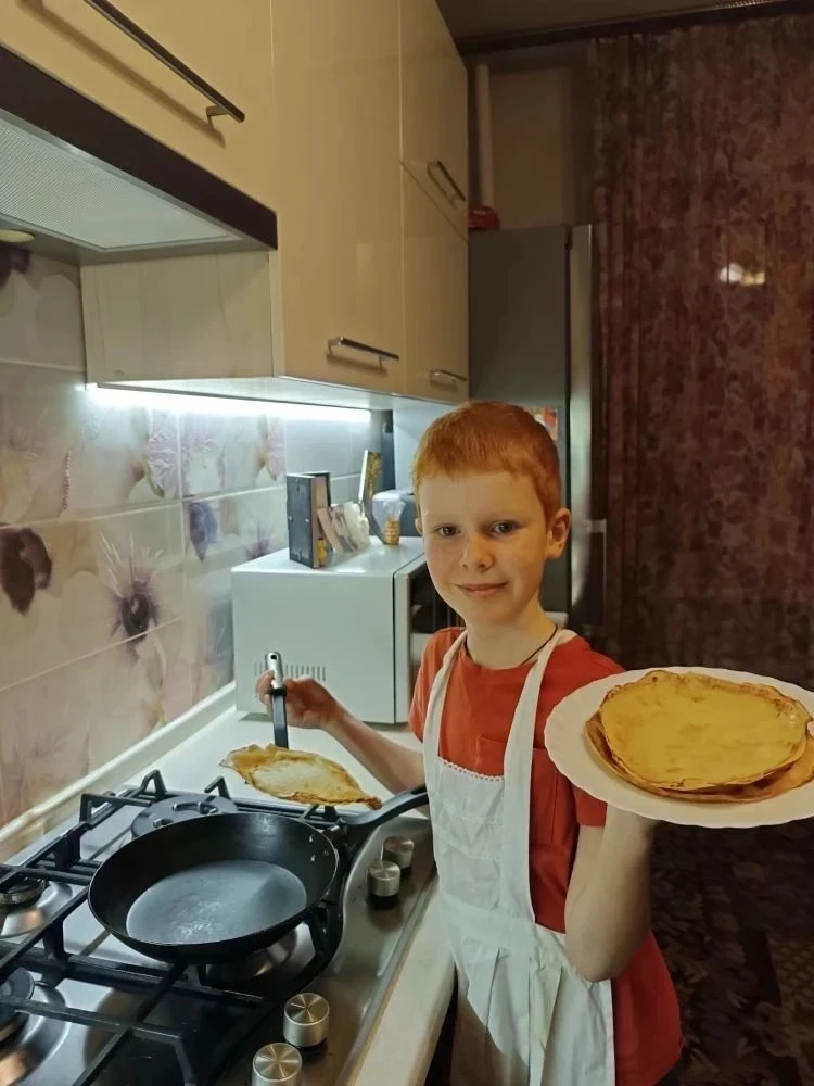 1А и 6В тоже сегодня жарят блинчики вместе с младшим братом.С масленицей!!!