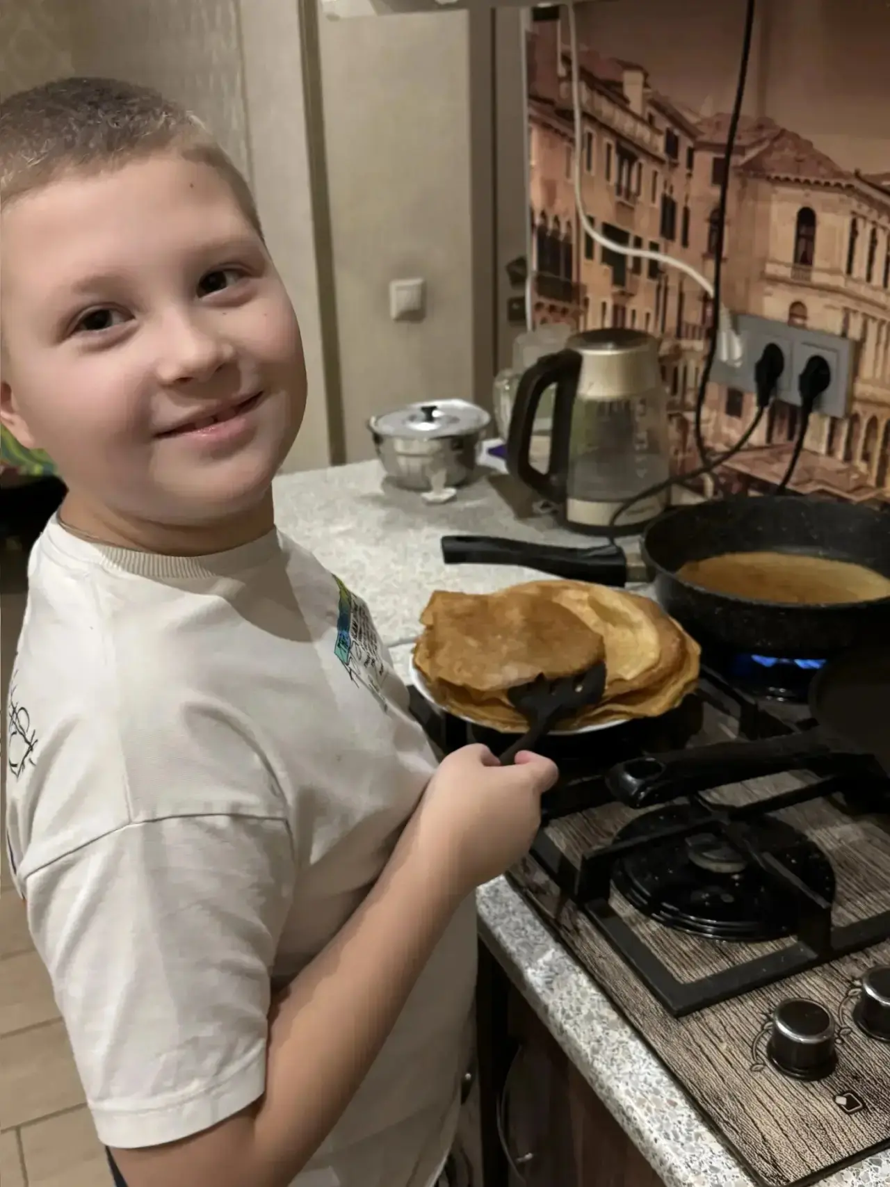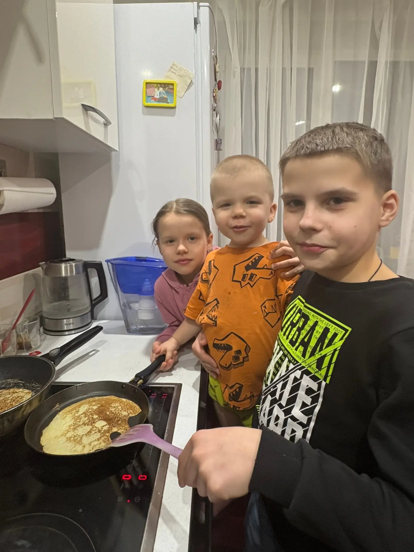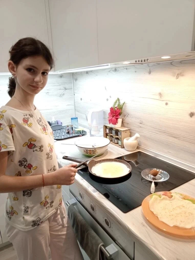 1А и 6В тоже сегодня жарят блинчики вместе с младшим братом.С масленицей!!!