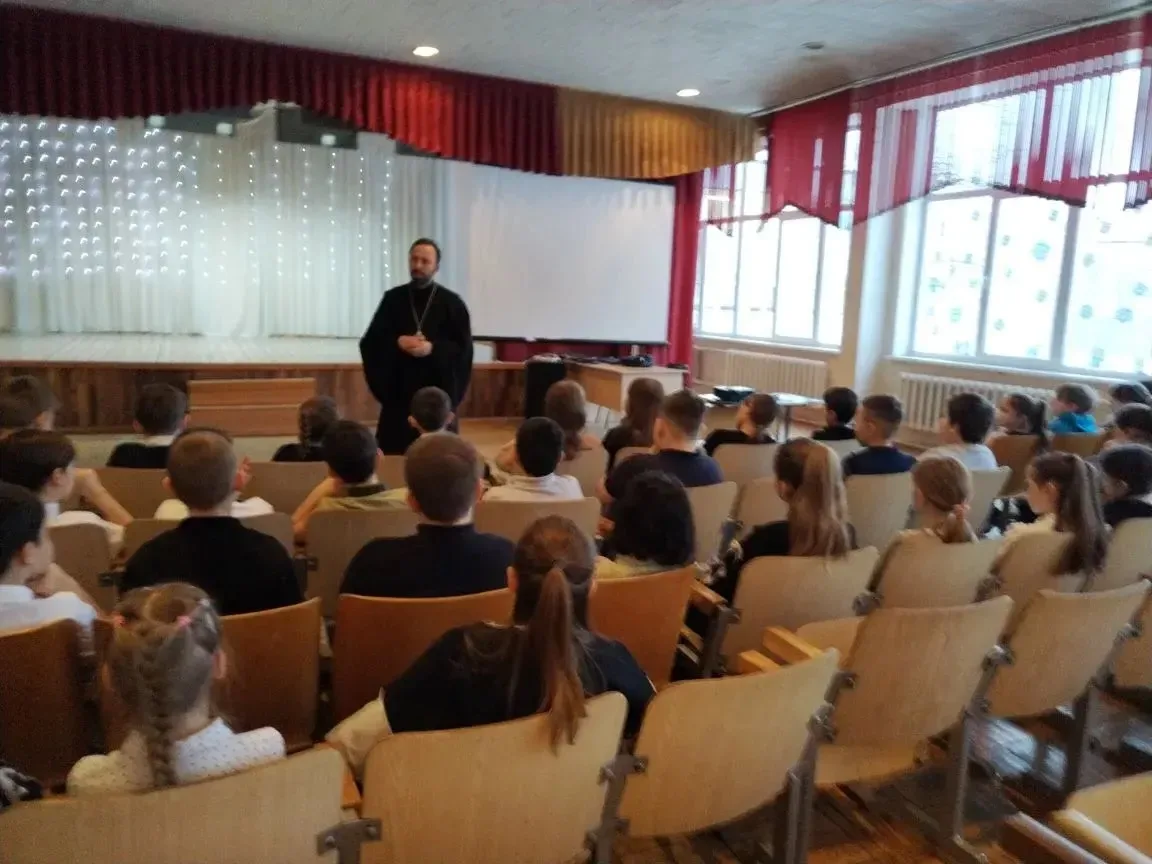 16 февраля состоялась встреча обучающихся 3 классов с настоятелем храма во имя великомученика Димитрия Солунского иереем Сергием Сильновым. Беседа была посвящена народным традициям и духовному содержанию Масленичной недели.