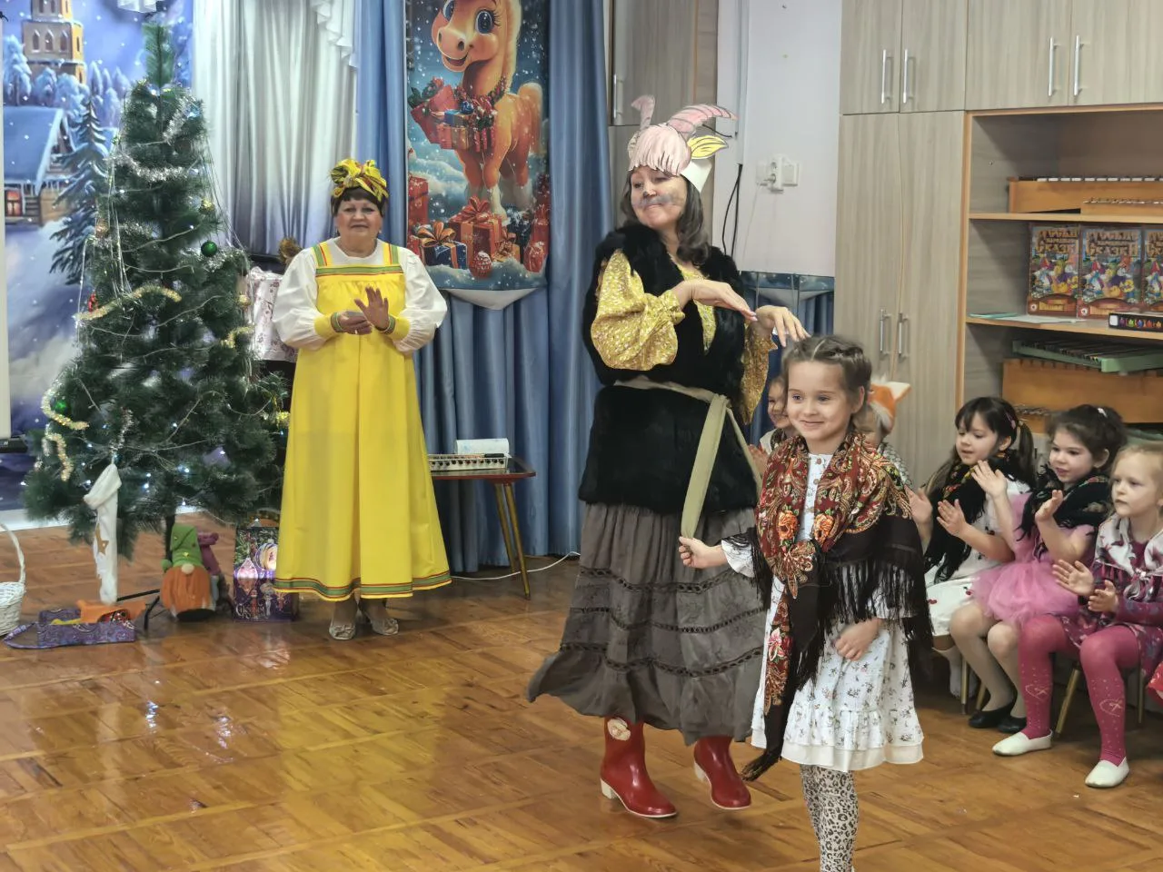 Праздник был насыщен сказочной атмосферой: дети читали стихи о Рождестве, пели песни "Рождественская елочка», «Снежная песенка», исполняли частушки, играли на музыкальных инструментах, танцевали танец "Звездочки", который навеял волшебство. Веселые скоморохи играли с детьми в снежки, водили хороводы. А задорные колядовщицы гадали и пели вместе с ребятами шуточные колядки.