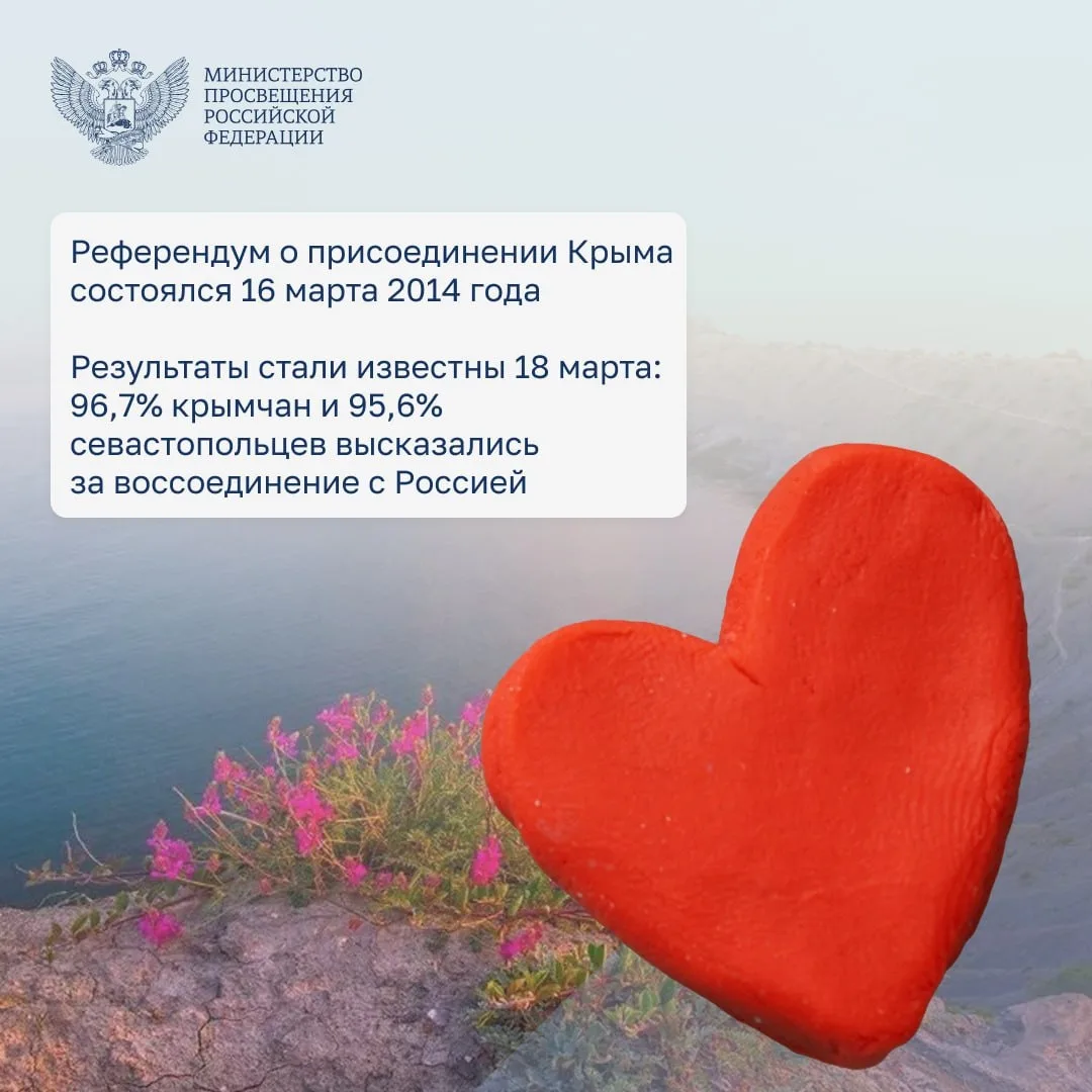 🗓️ В этот день в 2014 году по результатам референдума Республика Крым и Севастополь вошли в состав РФ. Эта памятная дата символизирует восстановление исторической справедливости и единство страны, что имеет особое значение в Год единства народов России.