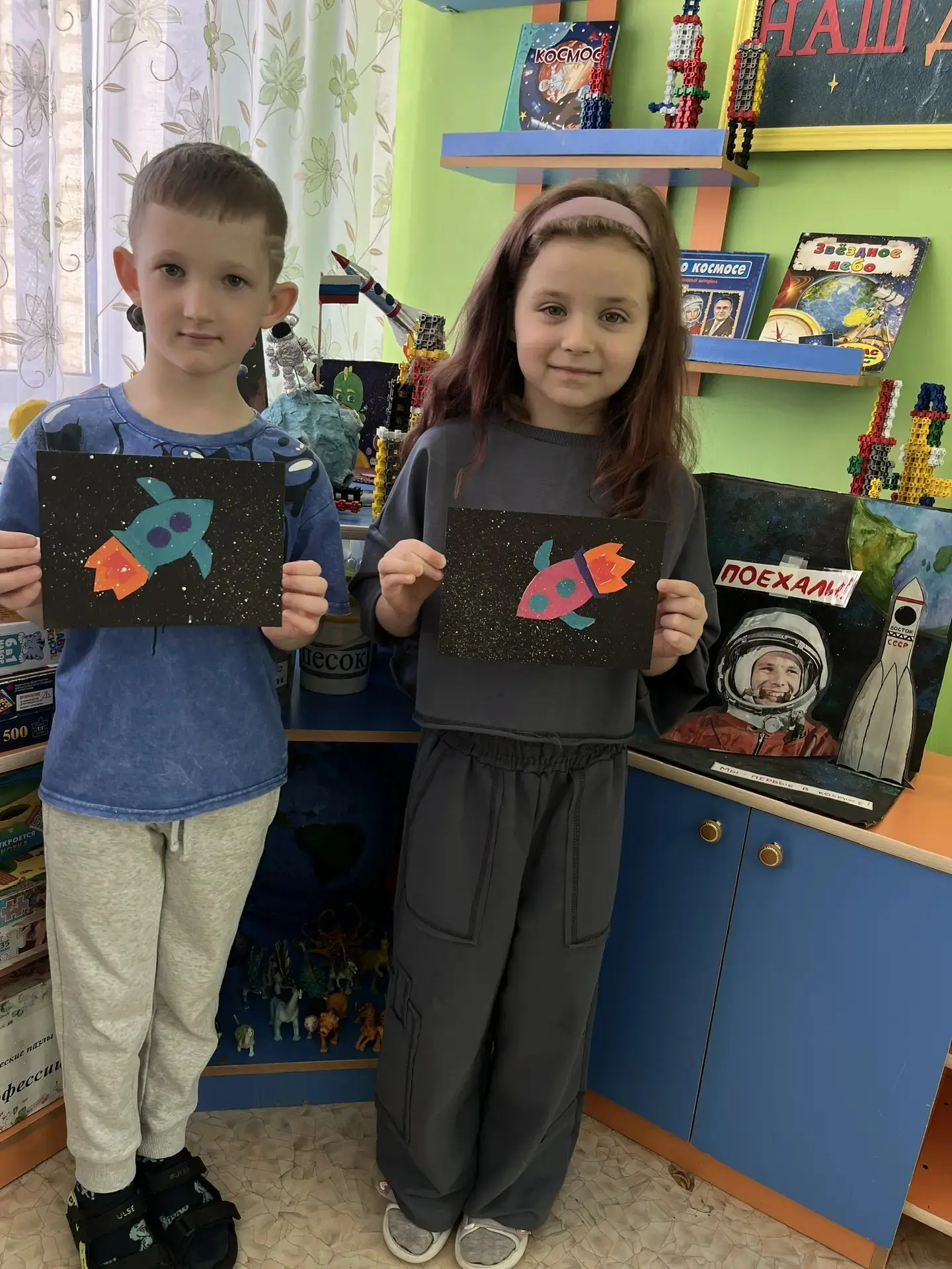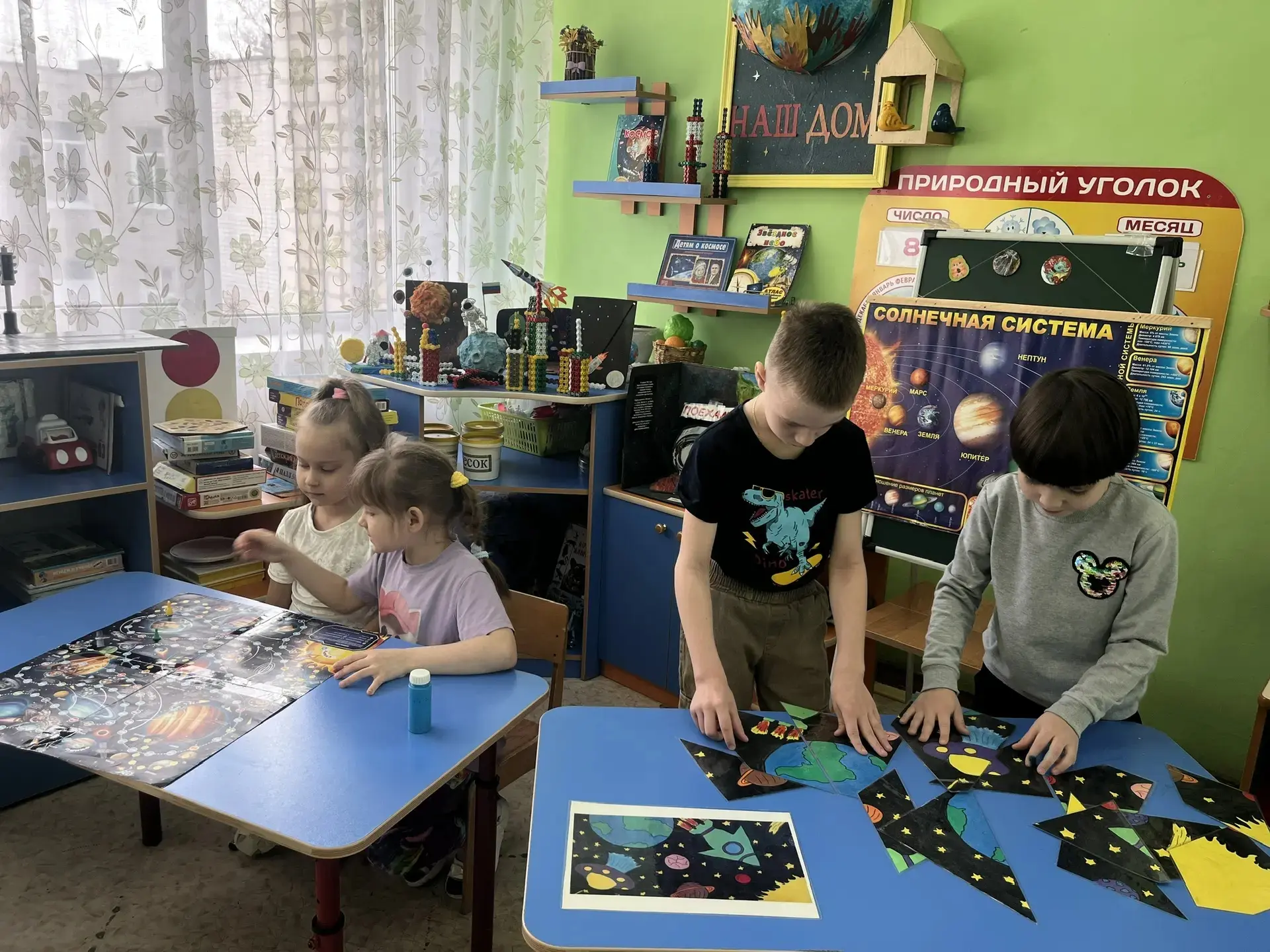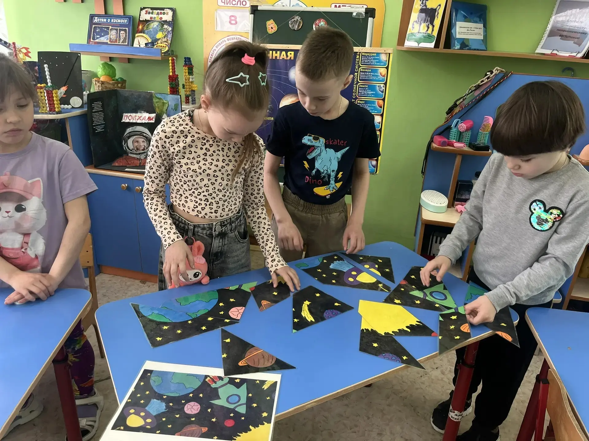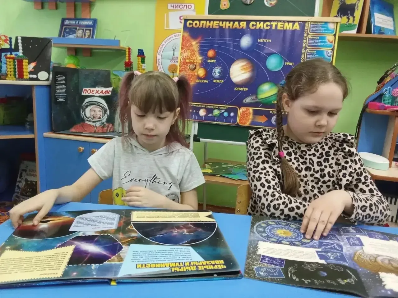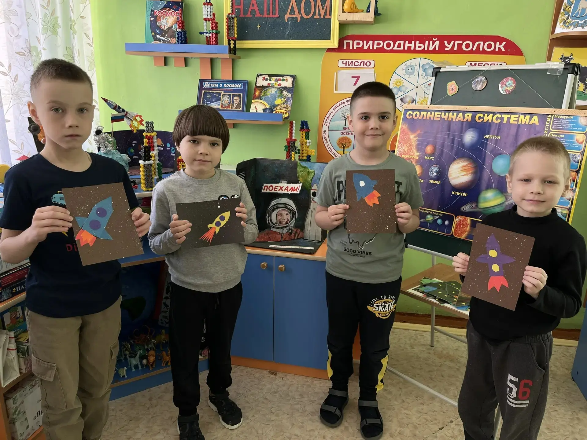 Дети познакомились с историей первого полёта, разгадали звёздные загадки и ребусы, справились с «космическим» кроссвордом.