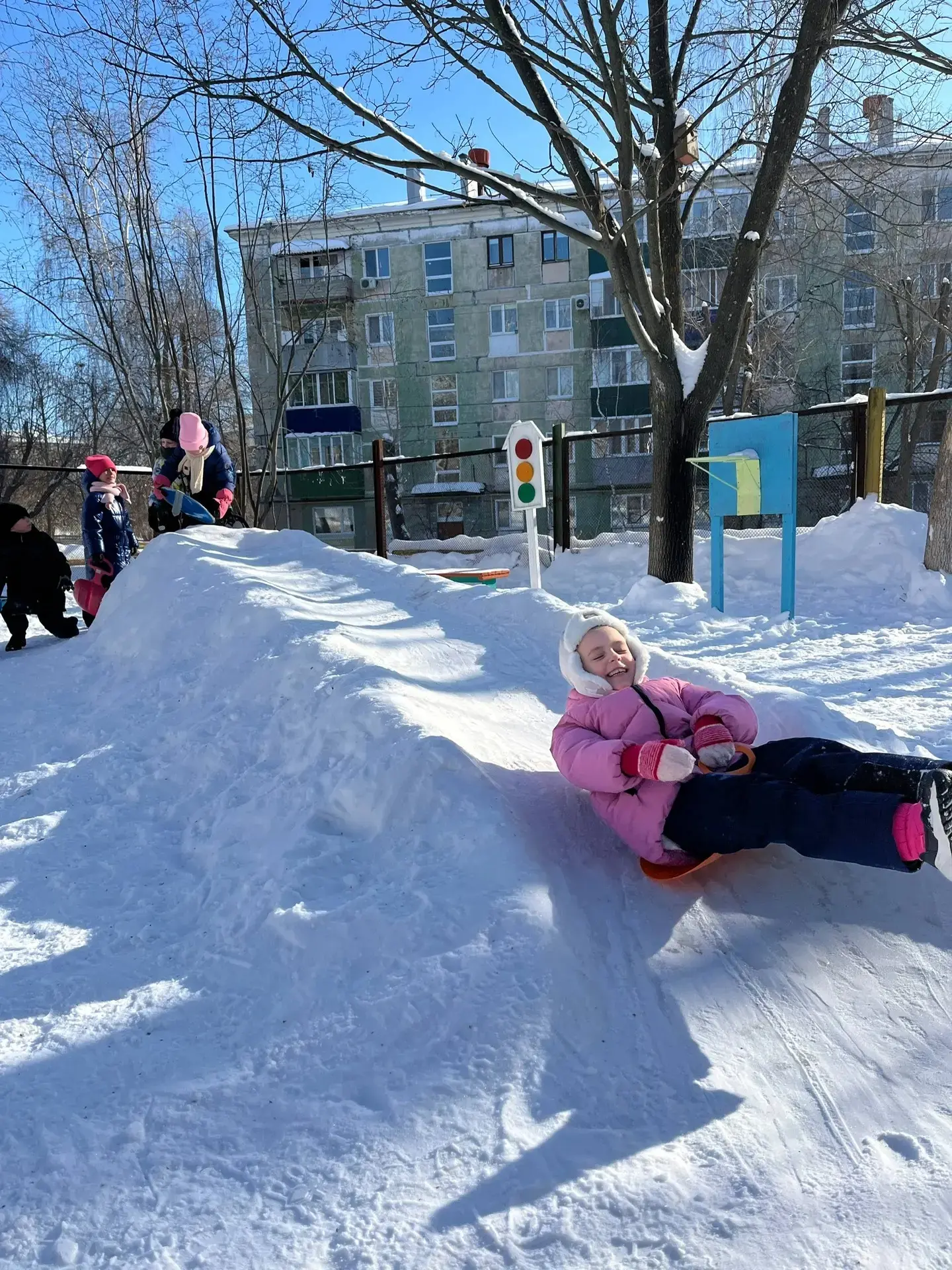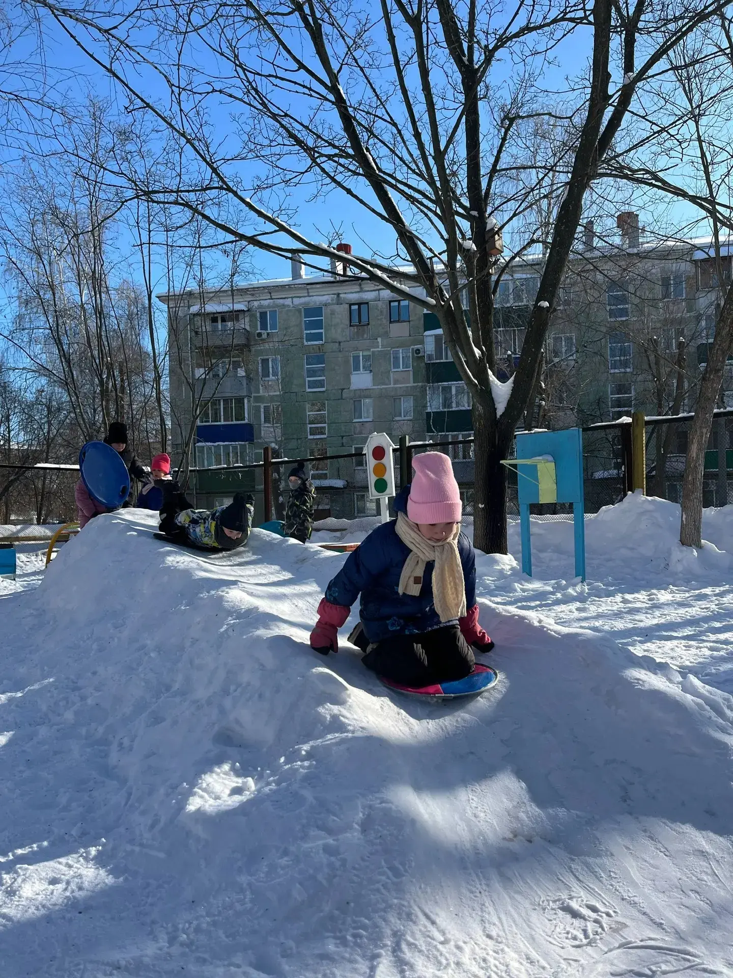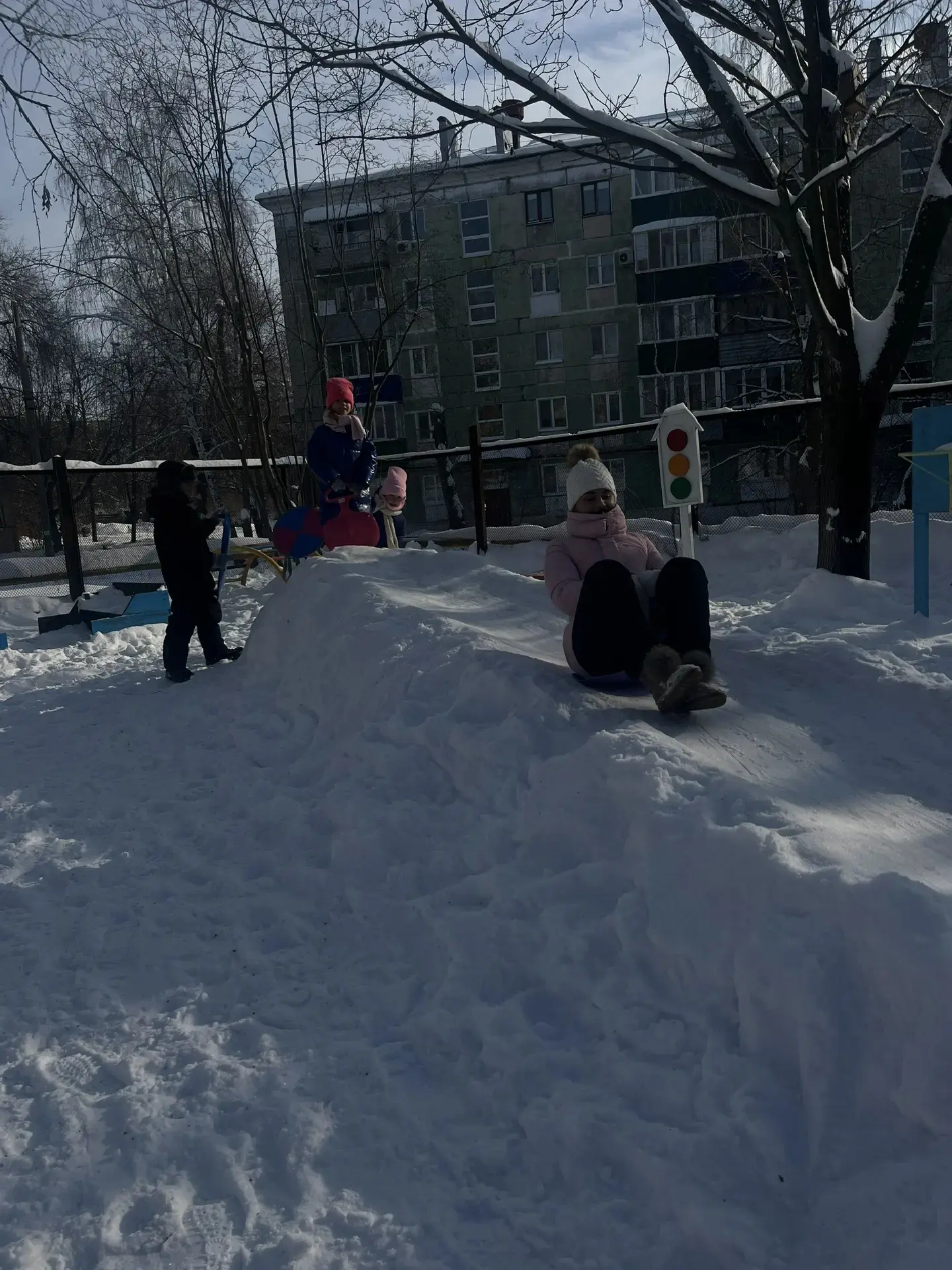 Взрослые и дети соорудили чудо -горку из снега и в морозный денек залили водой .💦💦💦