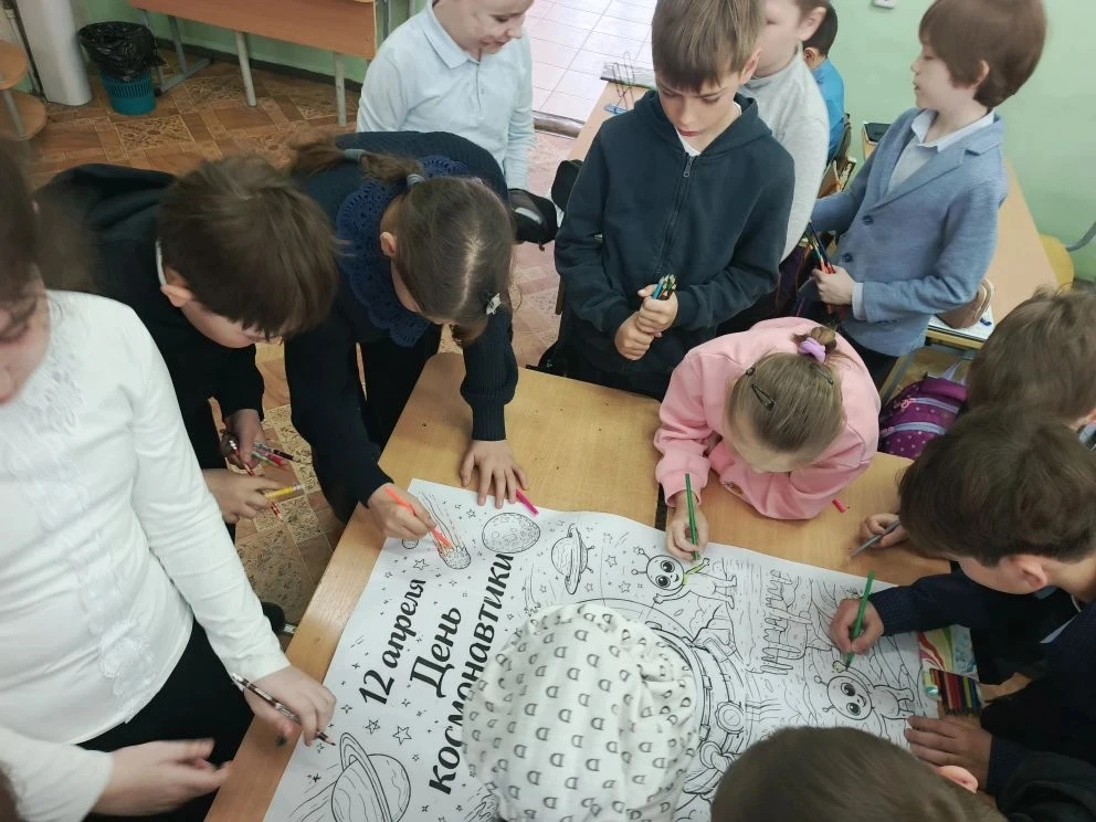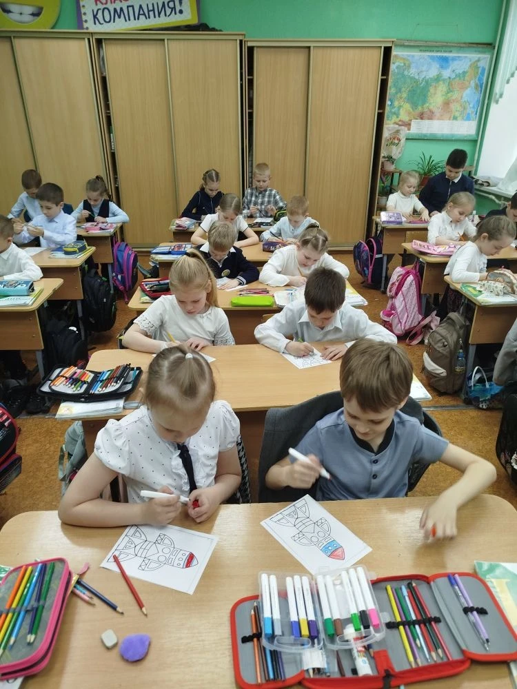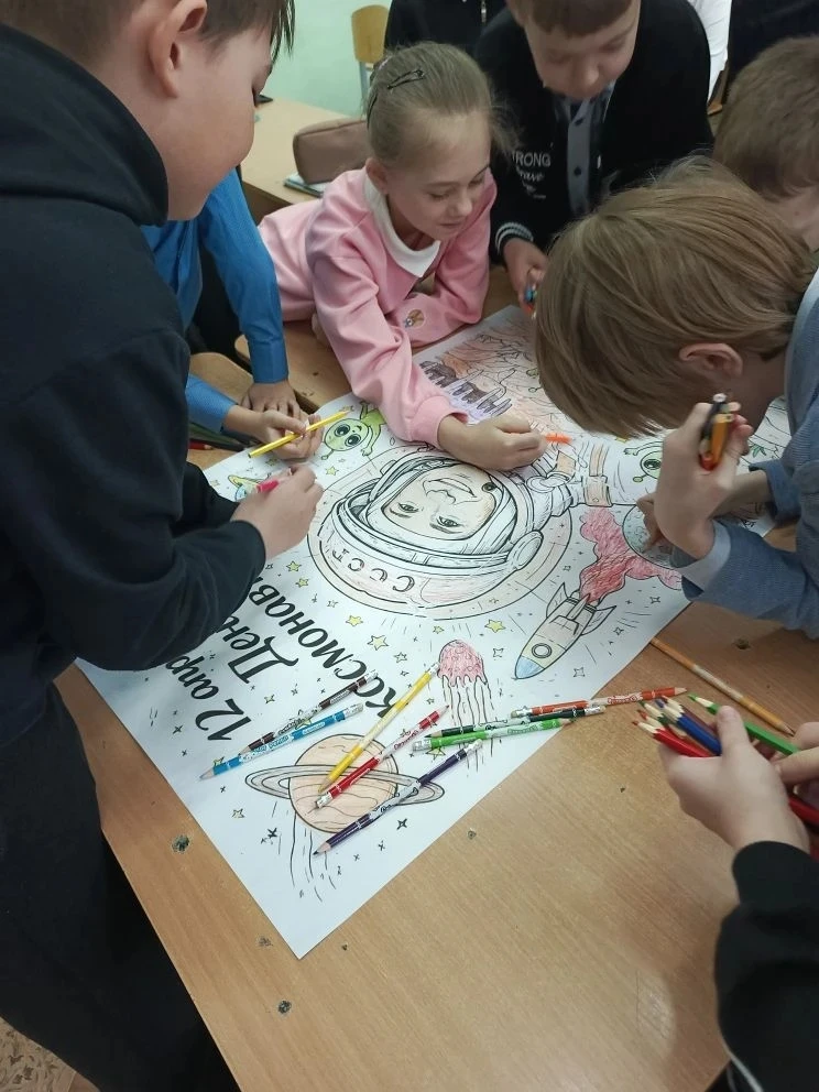 С большим интересом слушали отрывки из книги Юрия Нагибина «Рассказы о Гагарине». Школьникам рассказали о жизни первого космонавта, его характере, мужестве и о том, каким человеком был Юрий Гагарин. Запомнятся ребятам кадры запуска ракеты 🚀 с Гагариным на борту и его знаменитое: "Поехали!" Первоклашки не только отгадывали загадки о космосе, разукрашивали ракету, подбирали рифмы, но и делали космическую зарядку!