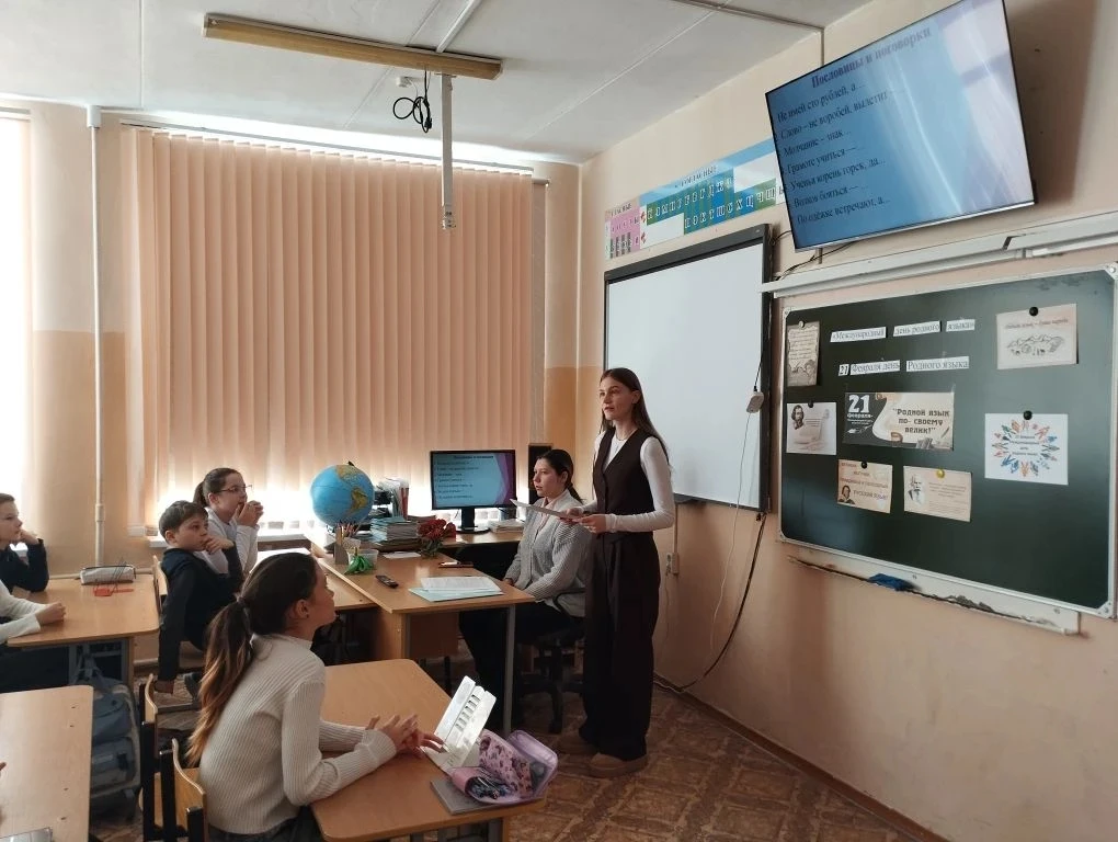 В ГБОУ СОШ №3 г. Сызрани состоялось мероприятие, посвященное Дню родного языка 🌍. Студентка педагогического вуза Будникова Марина организовала интересное и познавательное занятие 🎯 для учащихся 4 "Б" класса.