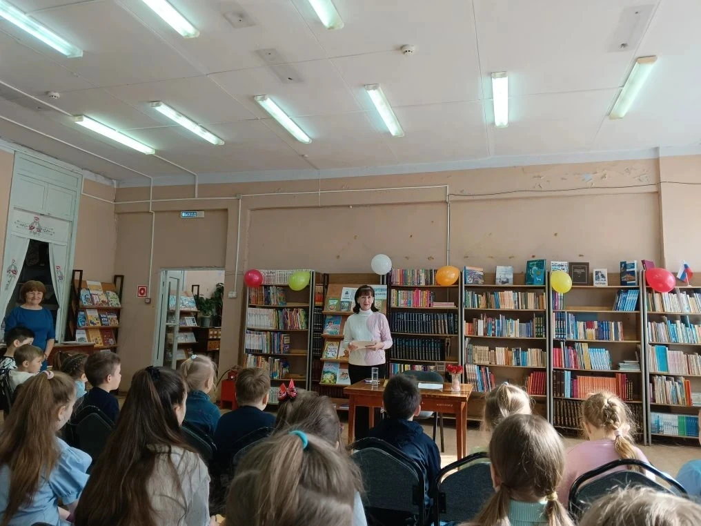 📚✨ 1 апреля в библиотеке №16 им. Н. И. Подлесовой прошла по-настоящему тёплая и запоминающаяся встреча с детской поэтессой Еленой Викторовной Мироновой. В этот день в читальном зале царила особая атмосфера: здесь собрались самые юные читатели — ученики 1-А, 2-А, 2-Б и 3-А классов.