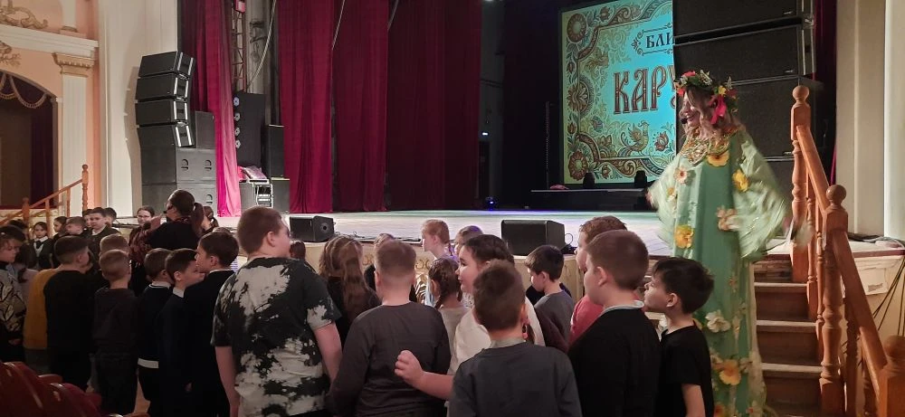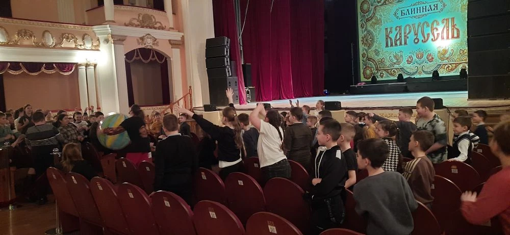 Сегодня ребята начальной школы стали участниками интерактивной развлекательно-образовательной программы"Блинная карусель,,Масленичный квиз,интерактив,,Блинная угадайка,,,народное караоке,русские испытания,,А вам слабо?,,танцевальный бой,,Стенка на стенку,,-всё создавало праздничное настроение.Ребята узнали о традициях празднования Масленицы.Выступление танцевальных коллективов ,общение с героями ,оформление сцены-всё привлекало внимание ребят.Час пролетел незаметно.Дети были вовлечены в действо и активны.