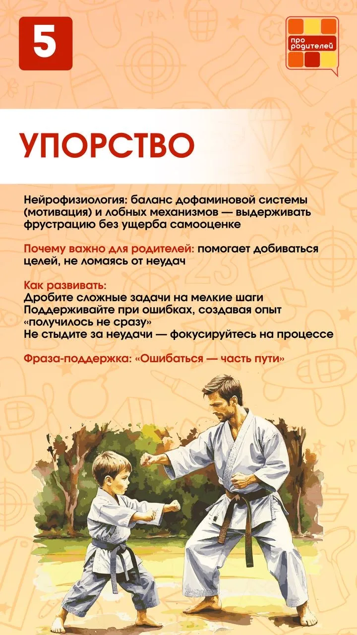 📔 Мы уверены, что воспитание чемпиона — это комплексный процесс, который требует внимания к разным аспектам развития личности. И чтобы сделать этот путь более понятным и структурированным, мы совместно с нашим экспертом, Любовью Юлпатовой, подготовили для вас информативные карточки.