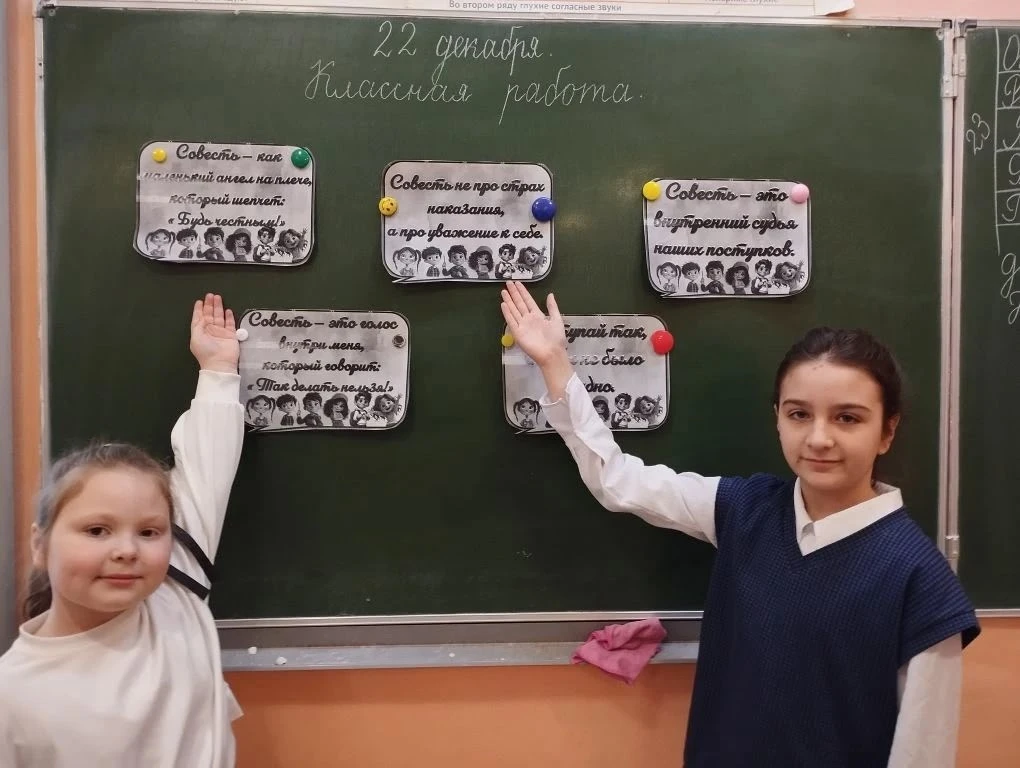 Сегодня, 22 декабря, в нашей школе состоялись традиционные встречи в рамках проекта «Разговоры о важном». Сегодняшняя тема занятий была посвящена глубокому понятию «Что говорит совесть?» Все мероприятия были направлены на развитие понимания учащимися ценности морали и личной ответственности за собственные поступки.