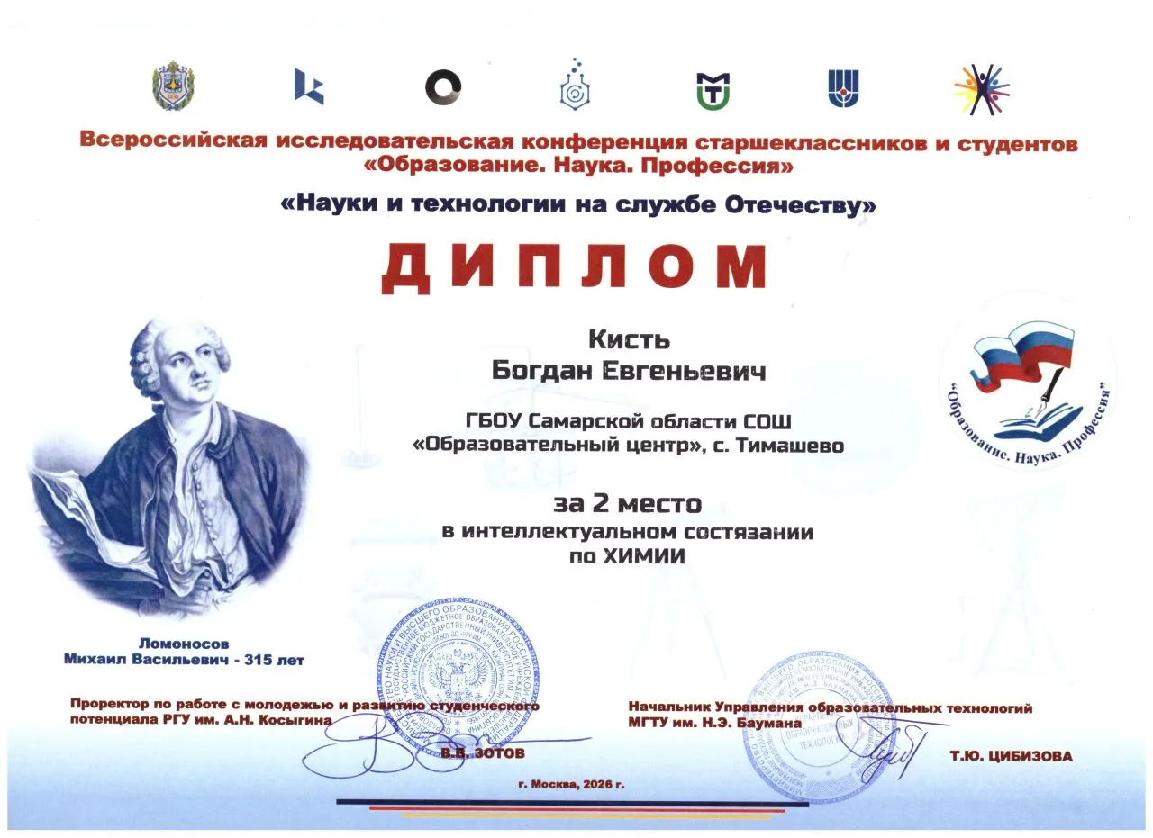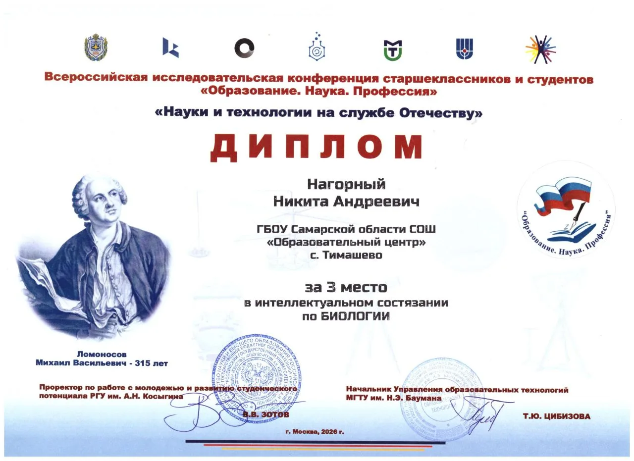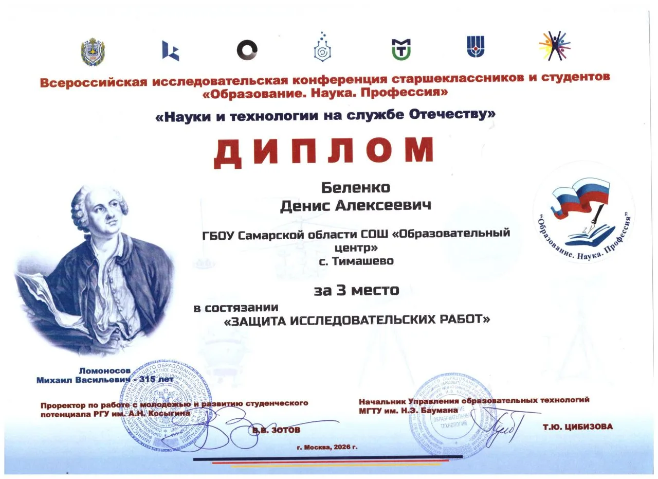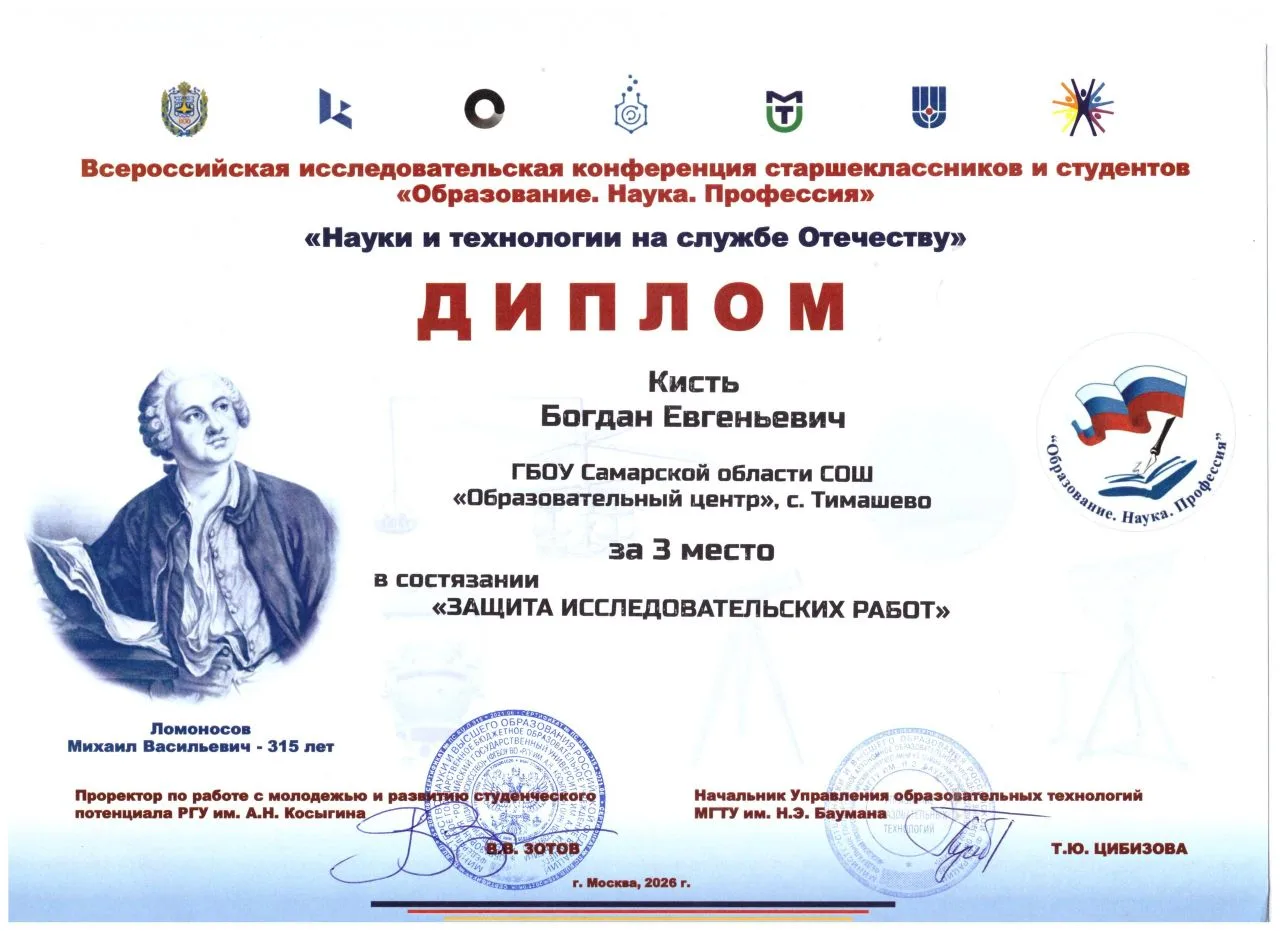 "Образование. Наука. Профессия". На конференции собрались самые креативные, талантливые исследователи с разных уголков страны. Нашу школу представляли учащиеся 10 класса Беленко Денис, Нагорный Никита и Кисть Богдан. Ключевым элементом конференции стала защита исследовательских работ,где участники представили результаты своей деятельности и заняли призовые места: