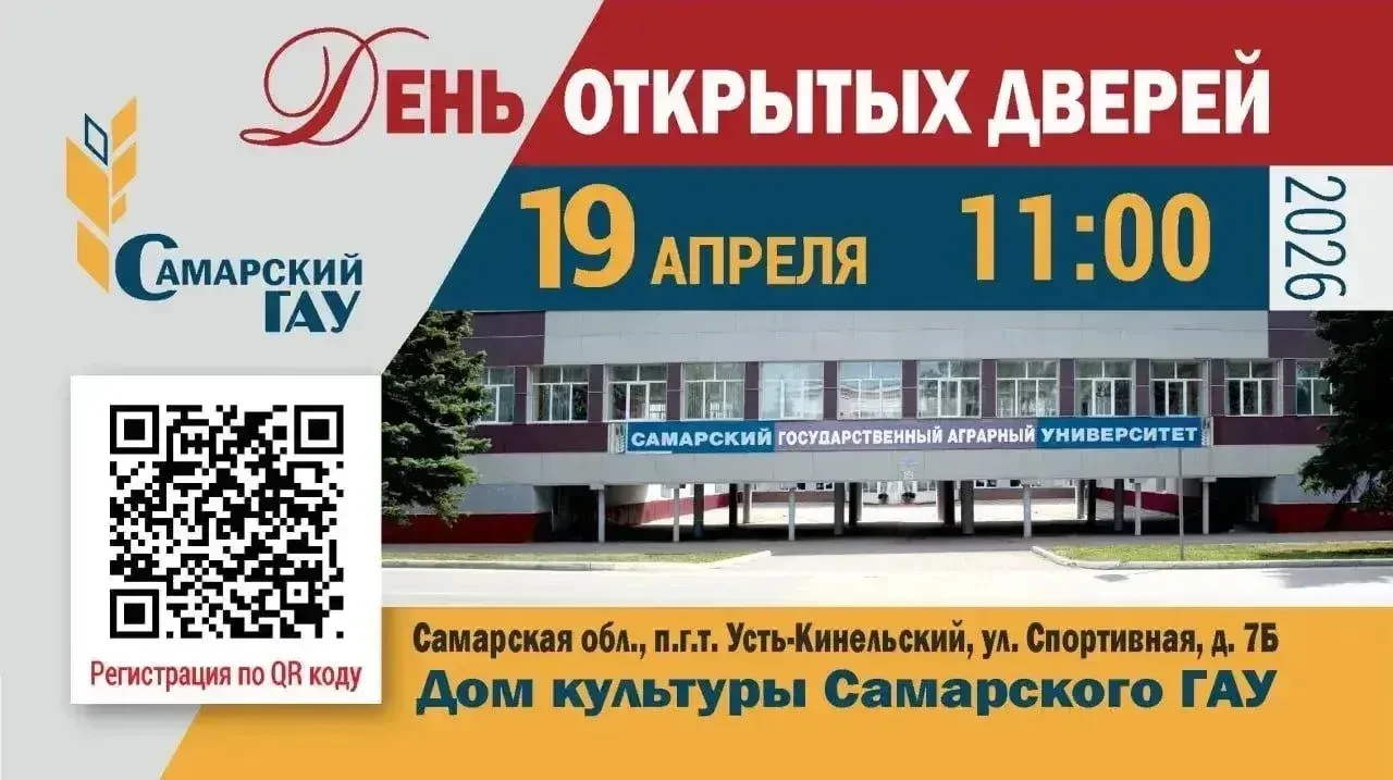 👆Напоминаем, что «День открытых дверей» Самарского ГАУ состоится 19 апреля 2026 года в 11:00 по адресу: п.г.т Усть-Кинельский ул. Спортивная, д. 7Б в здании Культурно-спортивного центра (Дома Культуры) Самарского ГАУ.