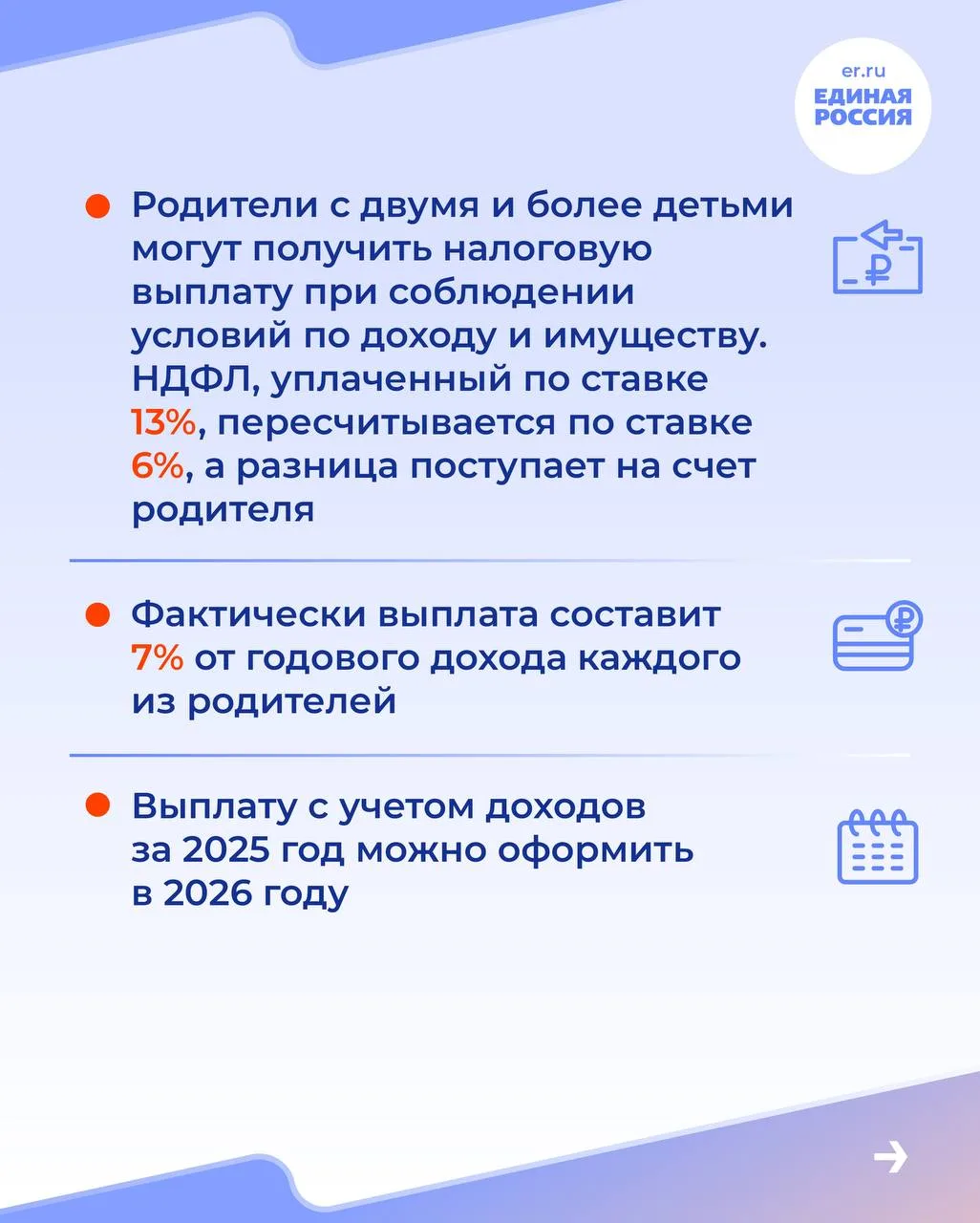 👍 С 1 июня 2026 года родители с двумя и более детьми смогут оформить налоговую выплату. Часть уплаченного налога можно будет вернуть уже за 2025 год.