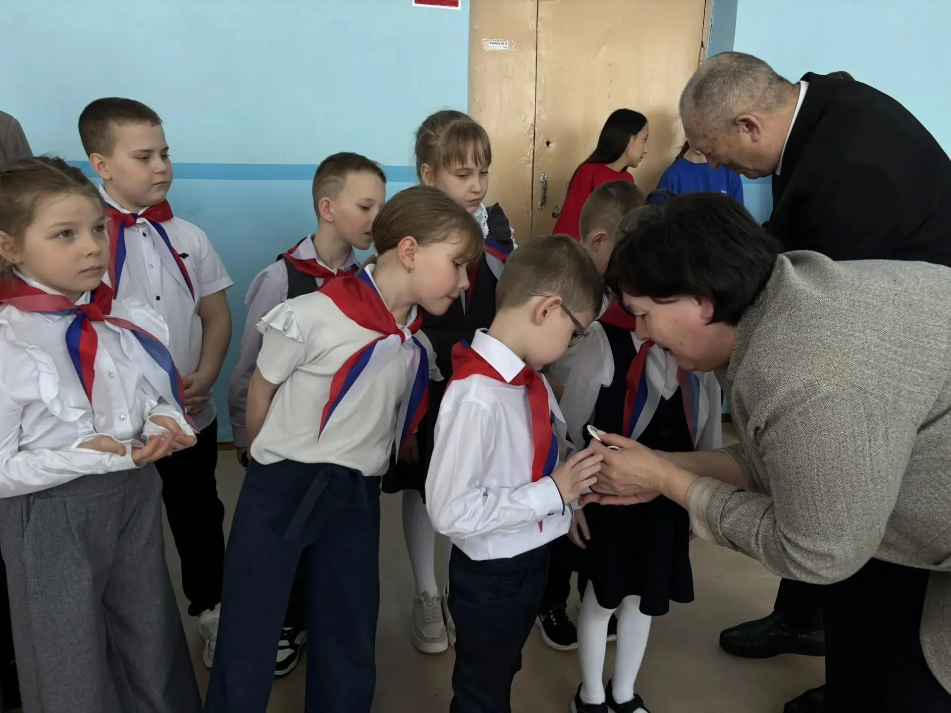 С этим важным событием ребят пришли поздравить директор школы Алякина Елена Петровна, заместитель главы по сельскому хозяйству Абаев Владимир Андреевич, ведущий специалист по организации работы Движения Первых в муниципальном районе Клявлинский председатель местного отделения Захарова Ирина Петровна.