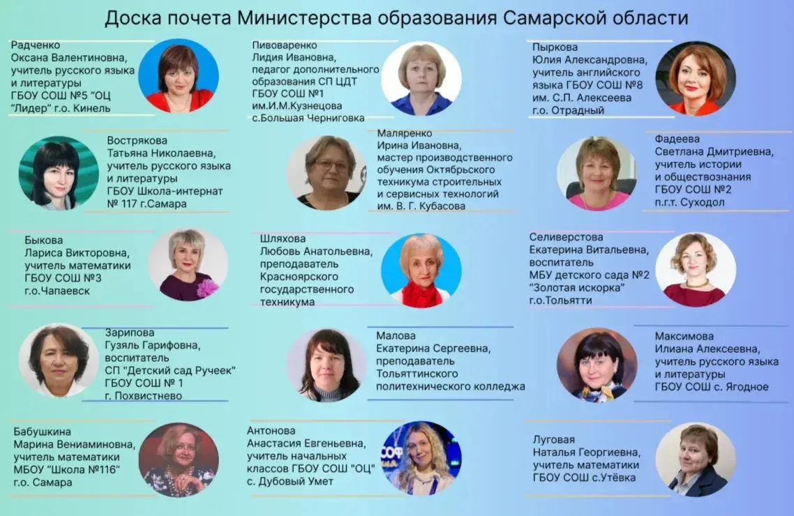 Поздравляем номинированных на Доску почета министерства образования Самарской области педагогов и наставников региона!