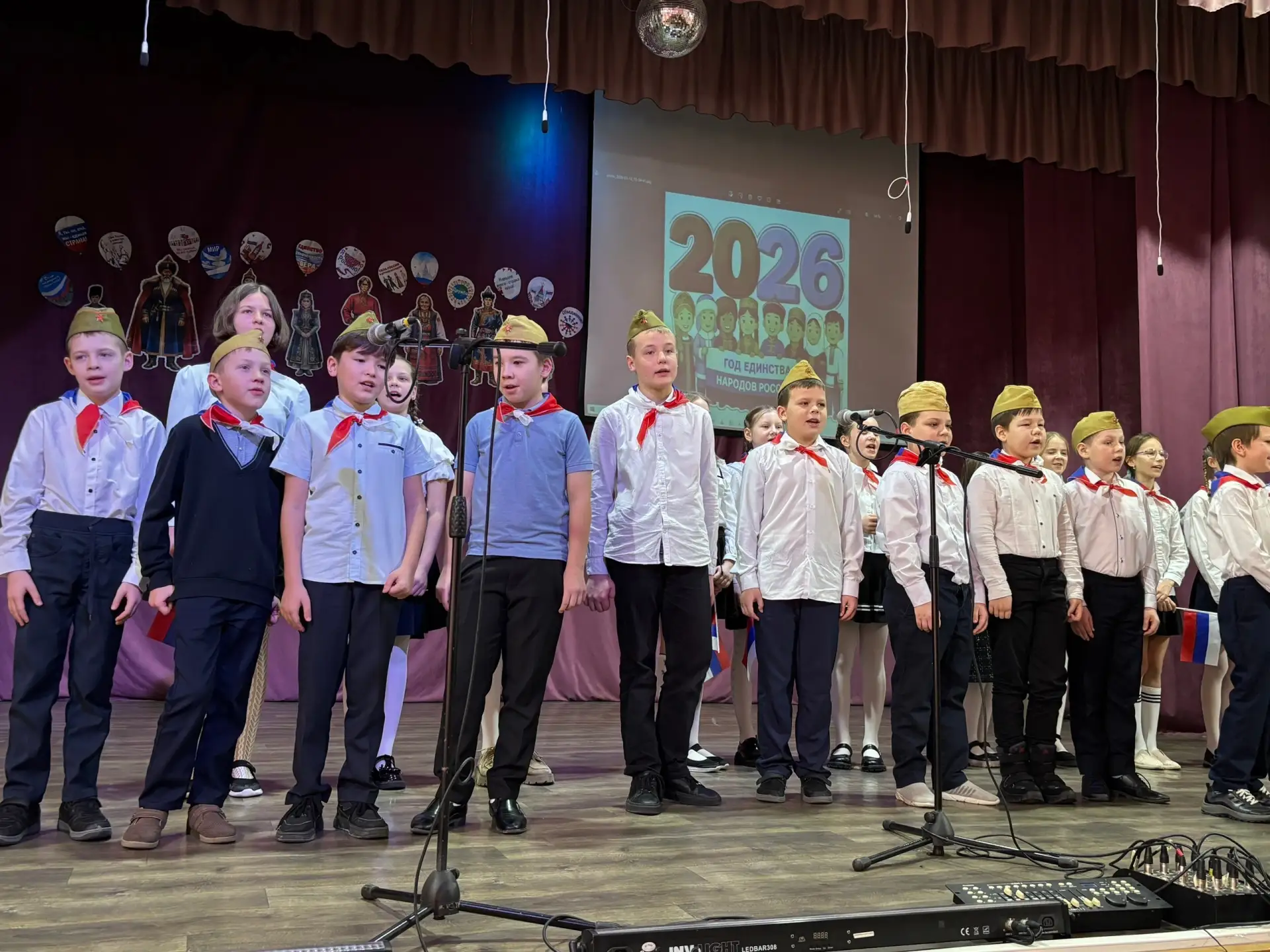 Сегодня мы подвели итоги конкурса патриотической песни среди учащихся начальных классов. Мероприятие было приурочено к Году Единства Народов России — и ребята сполна оправдали эту высокую тему!