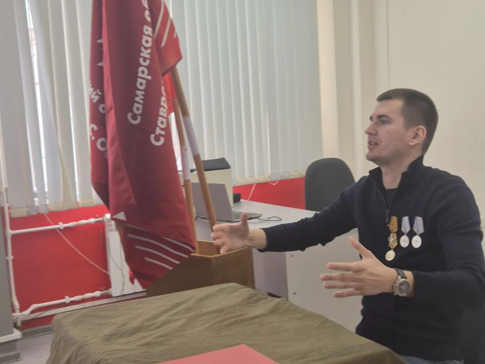 Участником встречи стал Баринов Дмитрий Андреевич , ветеран боевых действий сво.