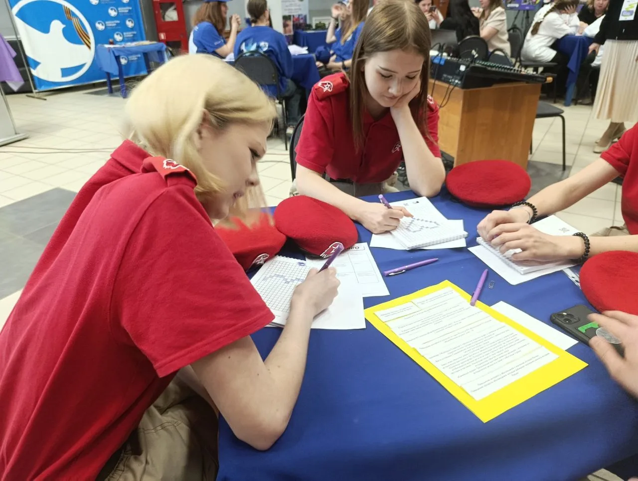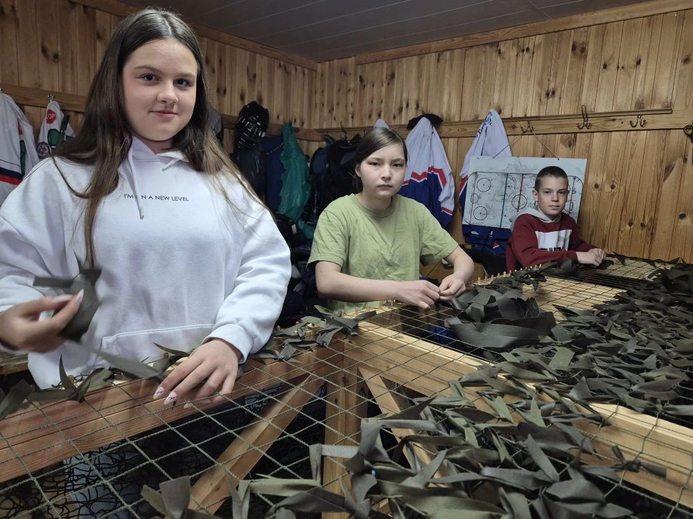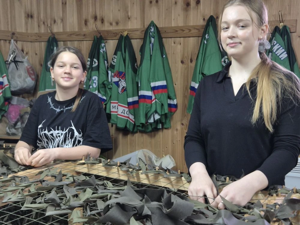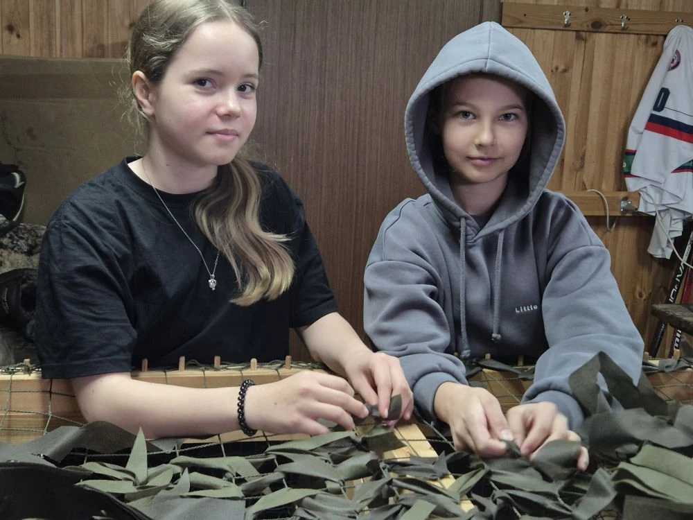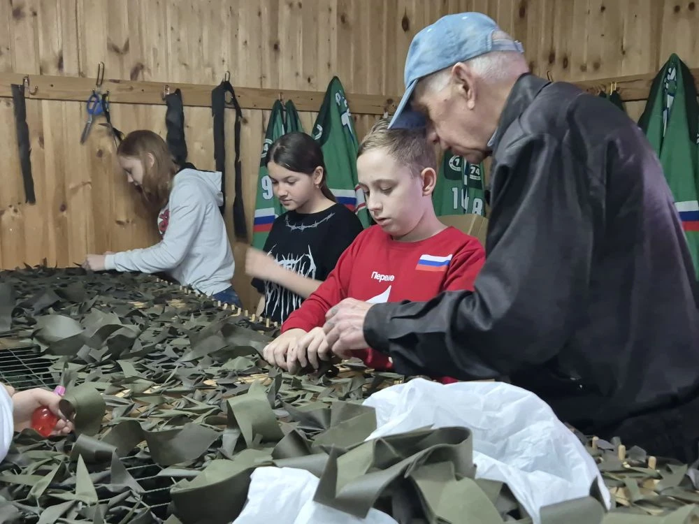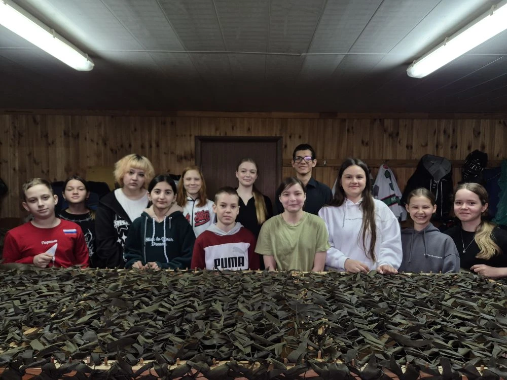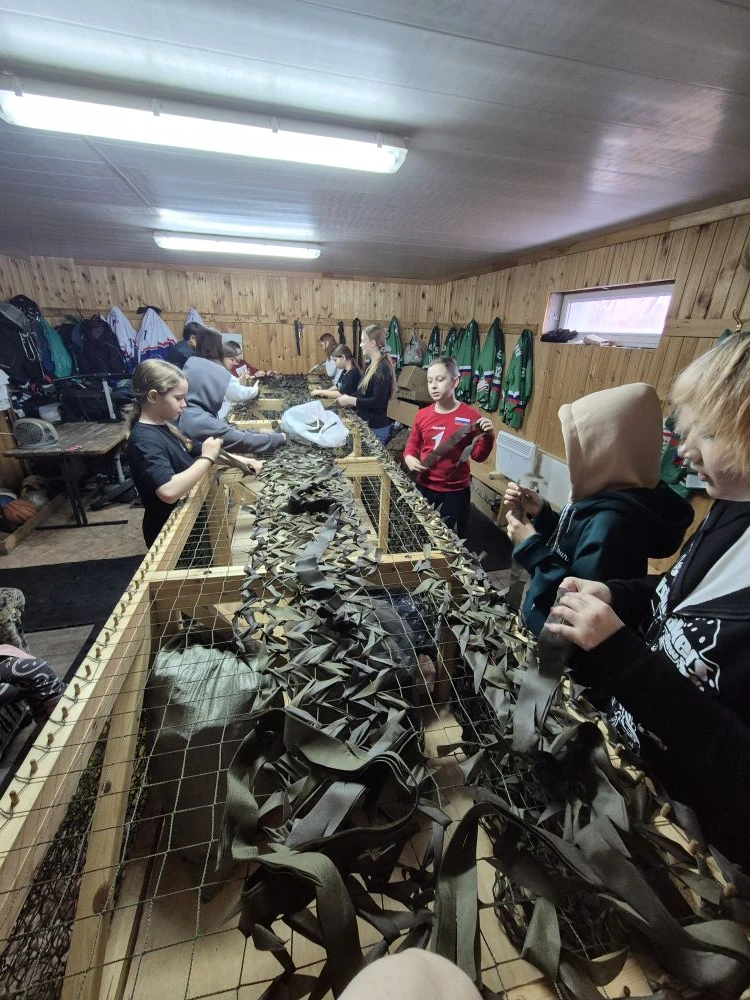 Наши школьные активисты не теряют времени даром — сегодня они помогали плести маскировочную сеть! 💪🧵