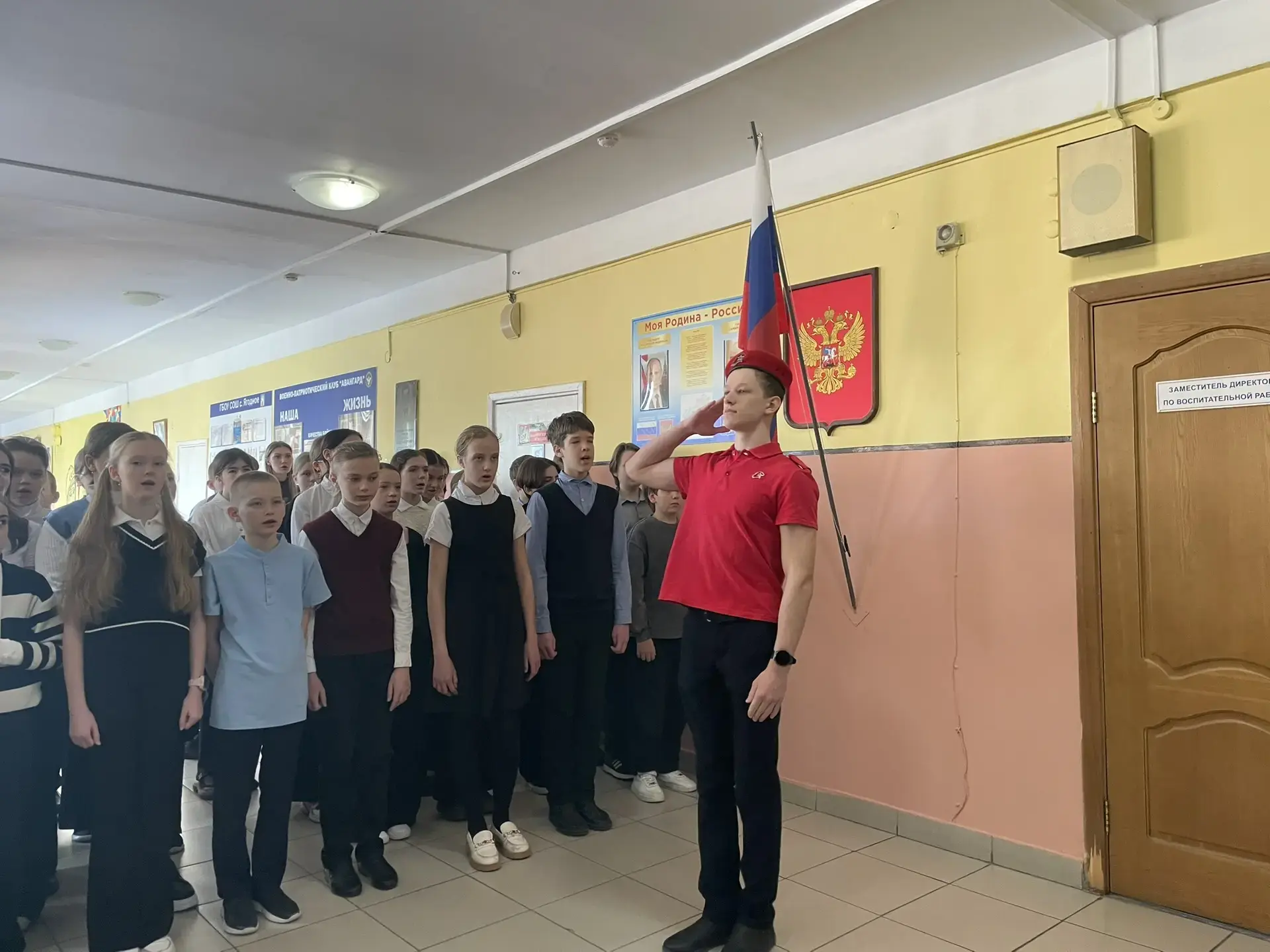 Право поднять государственный флаг РФ под исполнение было предоставлено Ракову Егору - курсанту юнармейского ВПК "Авангард им. В.С. Осипова"🇷🇺