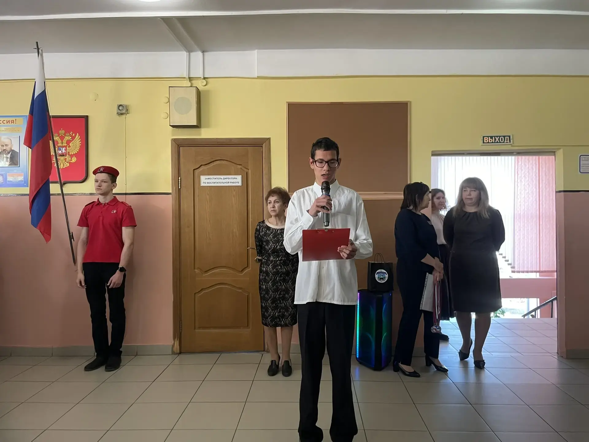 💫С отчётом о дежурстве выступил Яковлев Руслан -представитель дежурного класса. Также Руслан напомнил школьникам о необходимости соблюдения правил безопасности во время весенних каникул.