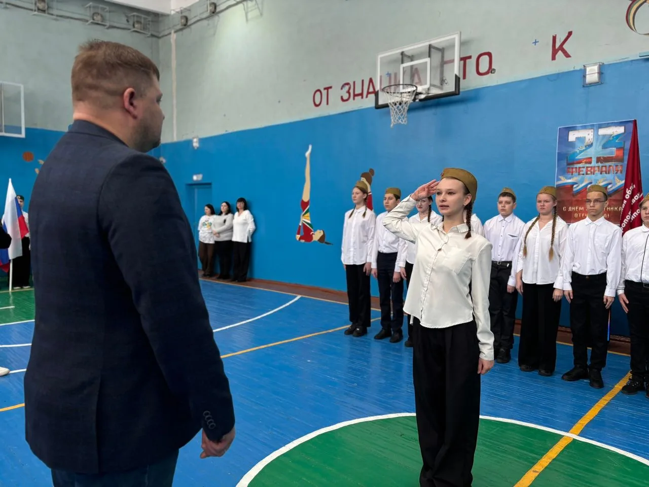 Накануне Дня защитника Отечества наша школа провела праздничный смотр строя и песни. Гостями и членами жюри были ветераны специальной военной операции: Баринов Дмитрий Андреевич и Никульшин Максим Юрьевич.