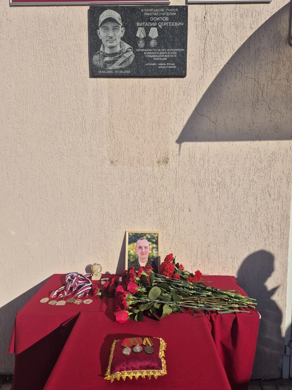 Сегодня в нашей школе прошла торжественная церемония открытия мемориальной доски, установленной на фасаде школы в честь учителя физкультуры и участника специальной военной операции Виталия Осипова. Этот день совпал с датой, когда молодому человеку исполнилось бы 26 лет.