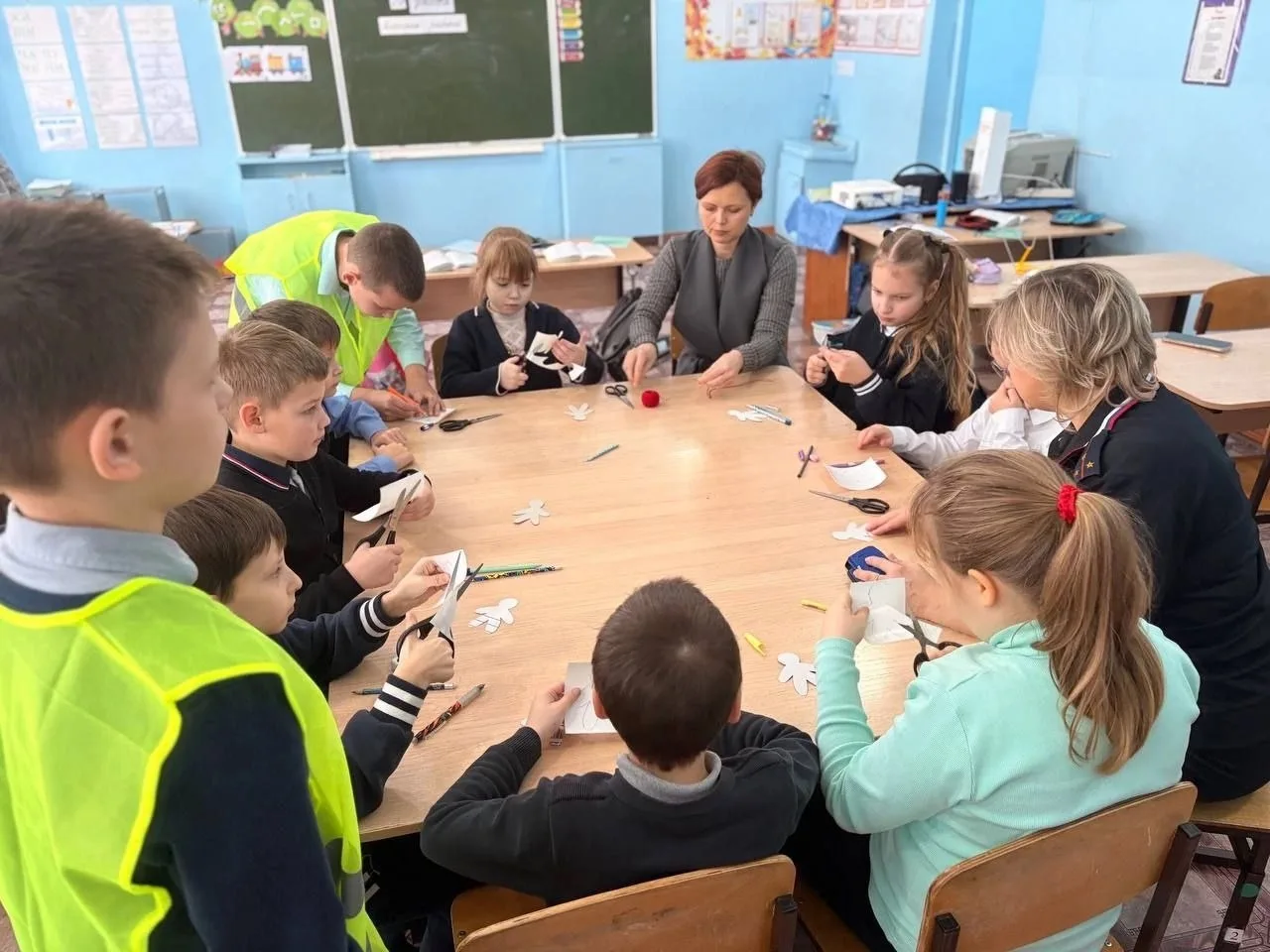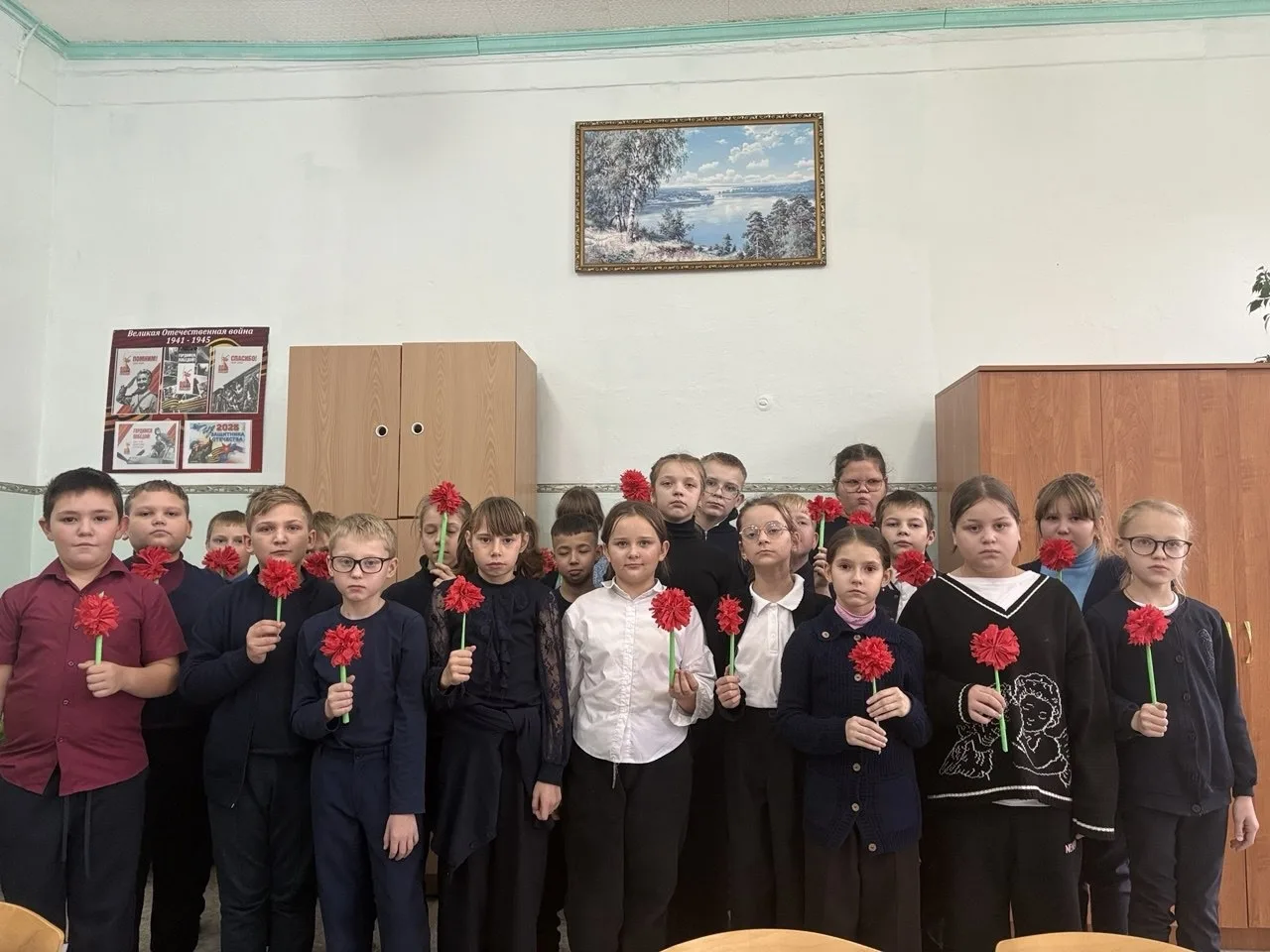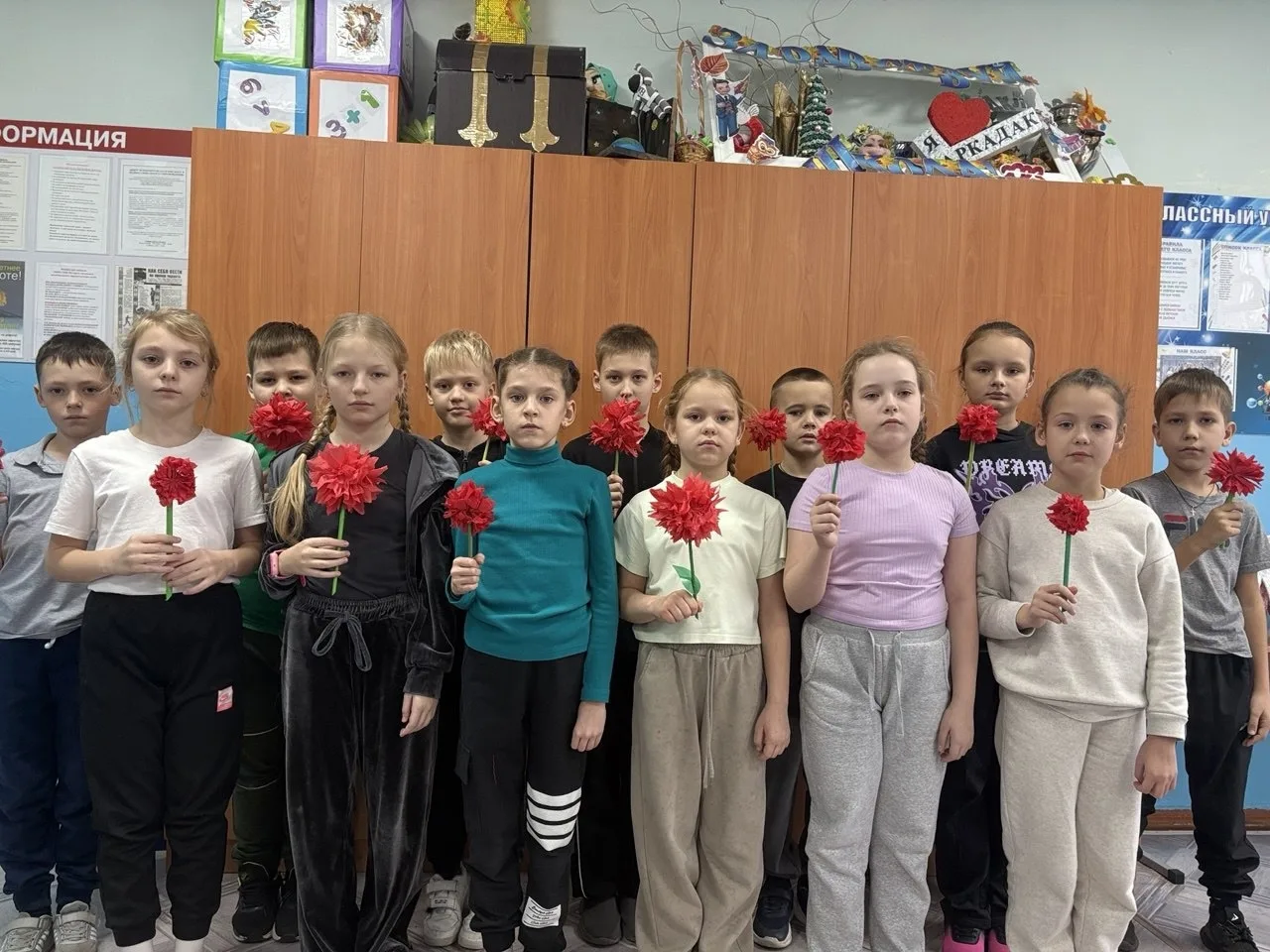 В рамках мероприятия школьники изготовили гвоздики из бумаги, символизирующие память и уважение к героям.