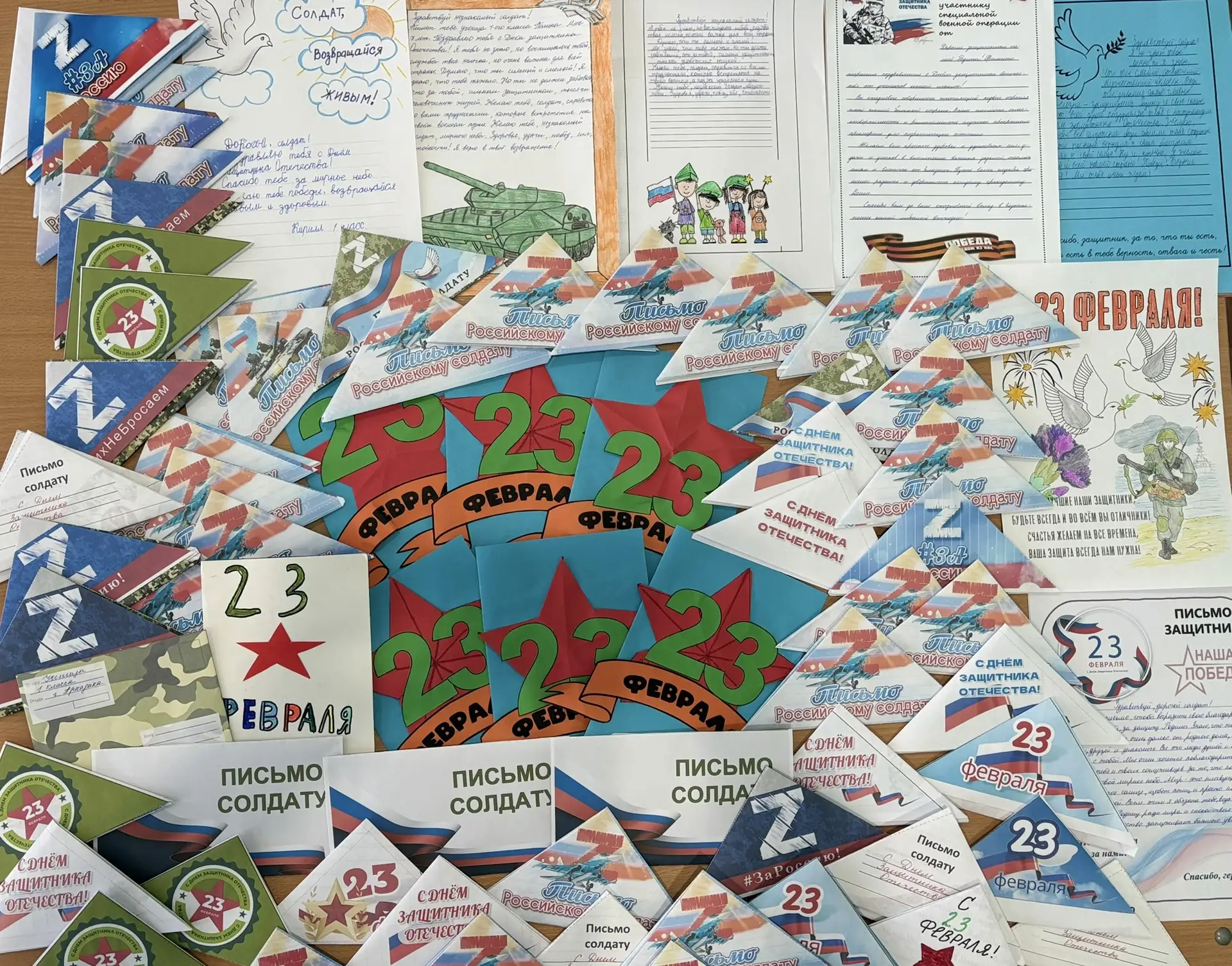 В акции смог принять участие каждый желающий. Мальчишки и девчонки разных классов в письмах и рисунках выразили признательность российским солдатам, написали, что они гордятся настоящими защитниками Родины и желают им скорейшего возвращения домой.