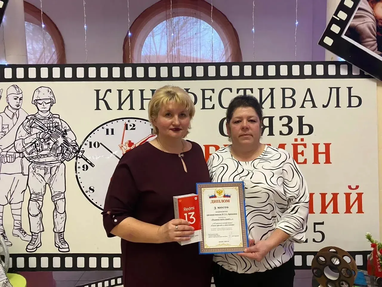 По итогам кинофестиваля 3 место заняла средняя школа №2 за фильм «Родина-мать зовет…». В создании фильма принимали участие обучающиеся и сотрудники нашей школы: Визнер Н.Г., Морозова М. М., Старостин С. В.