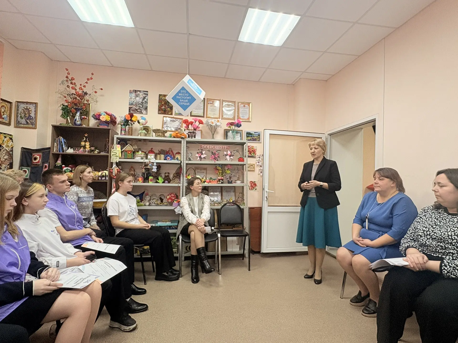 На встречу были приглашены представители и активисты волонтерских движений с образовательных учреждений и учреждений города, а также волонтер Лобачева Елена.