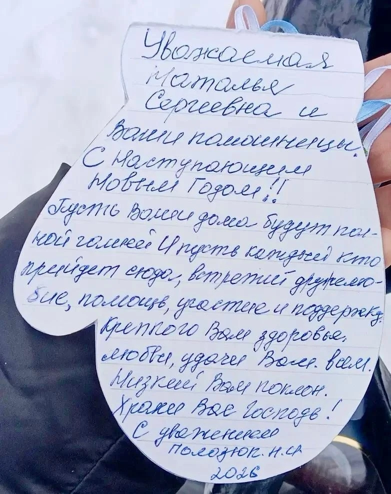 🙏В свою очередь, Нина Ивановна сделала своими руками новогоднюю открытку и принесла ее нам. Было очень приятно и трогательно.
