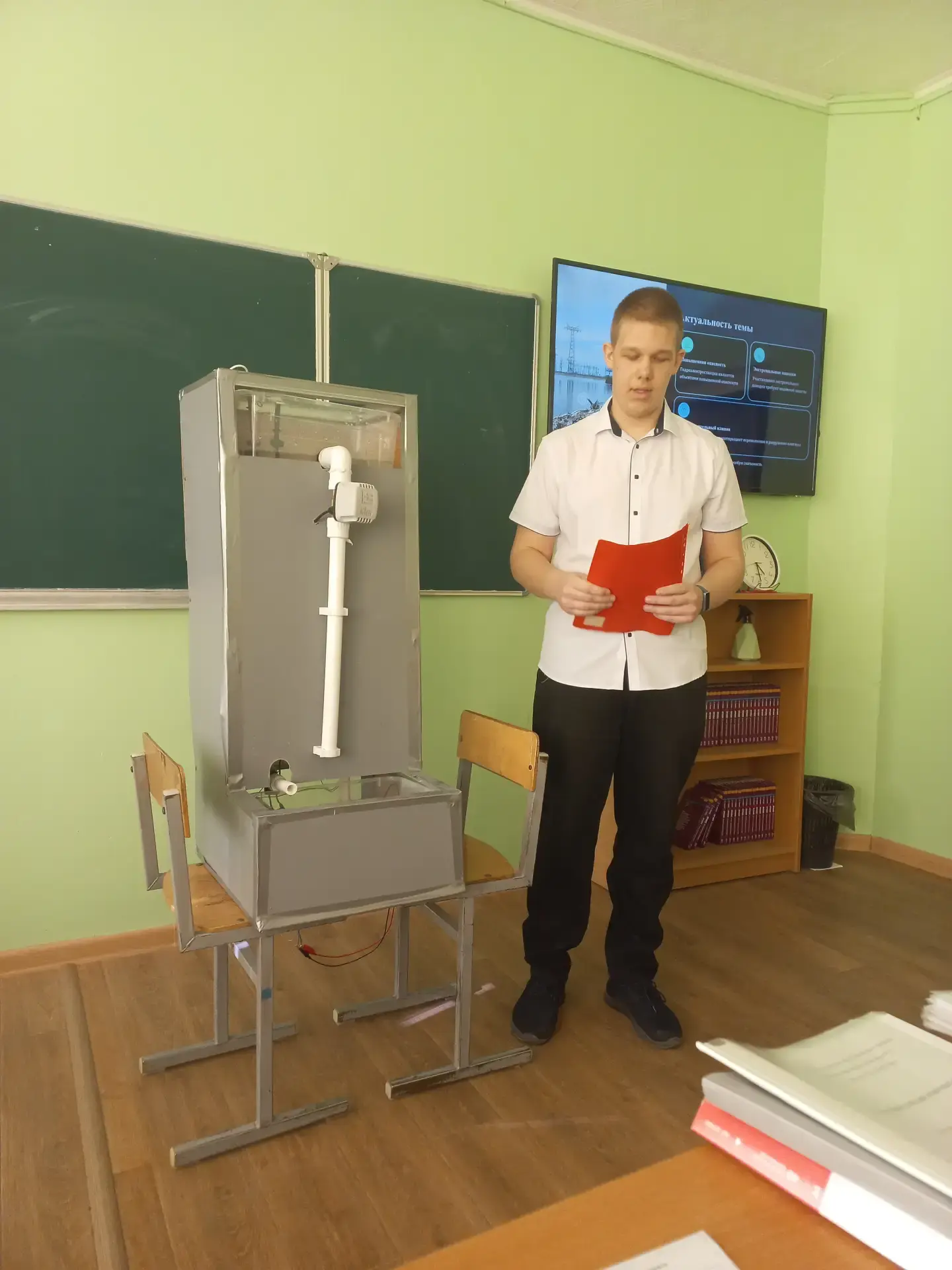 В защите своих исследовательских проектов на секции по научным достижениям и современным технологиям обучающиеся продемонстрировали практические знания и навыки использования энергии воды (Локтионов Д., 10 класс, руководитель Мартышев И.В.), системы аварийного водосброса в системе работы ГЭС (Шаронов Е., 10 класс, руководитель Мартышев И.В.), разработки калькулятора на базе микроконтроллера ESP32 для более точных вычислений информации (Калиничев Н., 10 класс, руководитель Макарова И.А.), создание онлайн энциклопедии животных и растений на платформе GitBook (Гриднев М., 10 класс, учитель Макарова И.А.), роли инфографики и инфографистов в современной рекламе (Гордиенко Ж, 10 класс, учитель Абрамкина Е.А.).