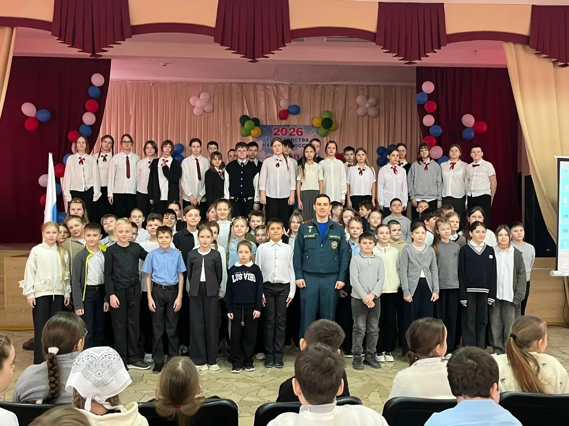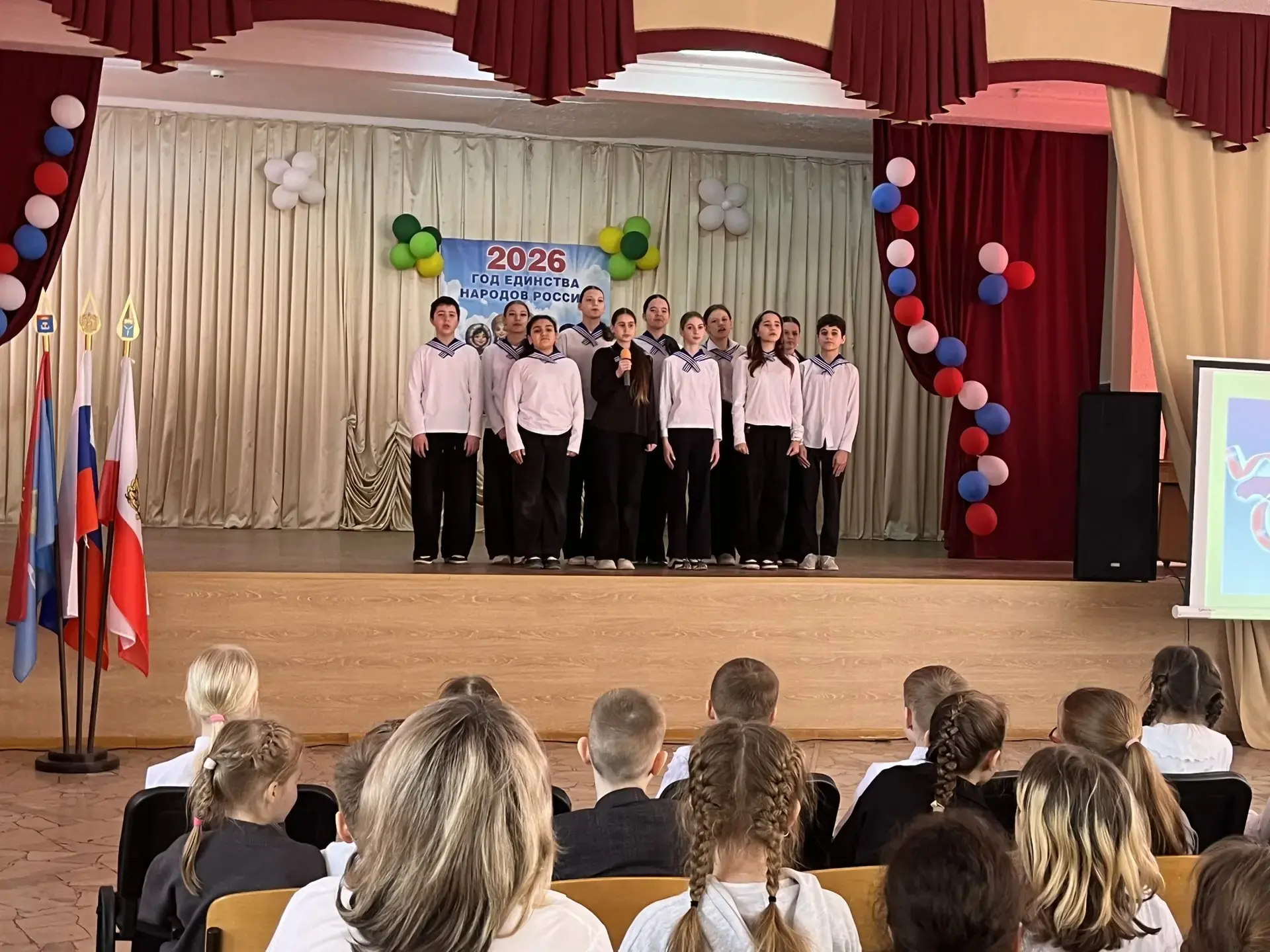 18 марта 2026г. в актовом зале МАОУ СОШ № 16 прошло яркое и торжественное мероприятие. Праздничный концерт для обучающихся 2,3,4 классов был посвящен историческому событию, возвращению Крыма в родную гавань. Открыл программу танцевальный коллектив «Журавушка» (руководитель — Морозова Е.И.) с невероятно красивым и душевным танцем «Русь». Ведущие, ученицы 11-го класса Паказаньева Александра, Прохорова Амалия, Стенковая Анна, погрузили зрителей в историю этого важного праздника. Со сцены прозвучало много теплых, проникновенных слов о судьбе Крыма, его богатой истории и неразрывной связи с Россией. Настоящим украшением праздника стали выступления наших юных звездочек, Алёны Карпаковой (3 «А» класс), которая очаровала весь зал исполнением доброй песни «У моей России рыжие веснушки», и Енисея Ромашова (3 «В» класс), подарившего зрителям прекрасные вокальные номера, исполнив песни «Росиночка, Россия» и «Художник». Крым — это бескрайние моря, славный флот и надежная защита наших границ! Эту гордую морскую тему поддержал ансамбль 6 «Г» класса, который торжественно исполнил «Гимн нахимовцев». Завершился праздник на высокой патриотичной ноте. Танцевальный коллектив «Журавушка» вновь вышел на сцену с масштабным танцем о России, в финале которого ребята символично соединились в живой российский триколор!