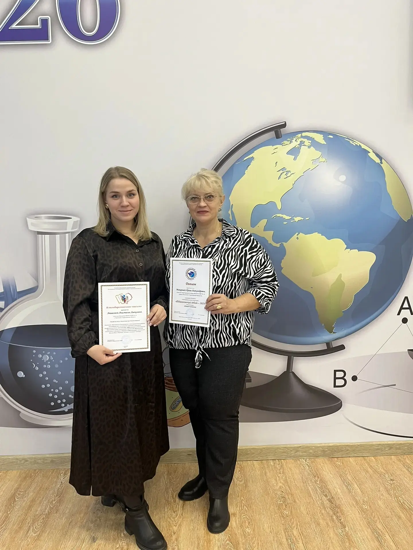 19.03.2026 г. в МАОУ СОШ № 26 состоялось награждение учителей — участников муниципального конкурса «Педагогический дебют – 2025 г.». Поздравляем Макарову И.А., учителя иностранного языка, занявшую 2 место в номинации «Педагог-наставник», и Атласову А.А., учителя биологии, награжденную грамотой Председателя КО АБМР Склеминой Г.А. за активное участие в конкурсных мероприятиях, профессиональные достижения и творчество.