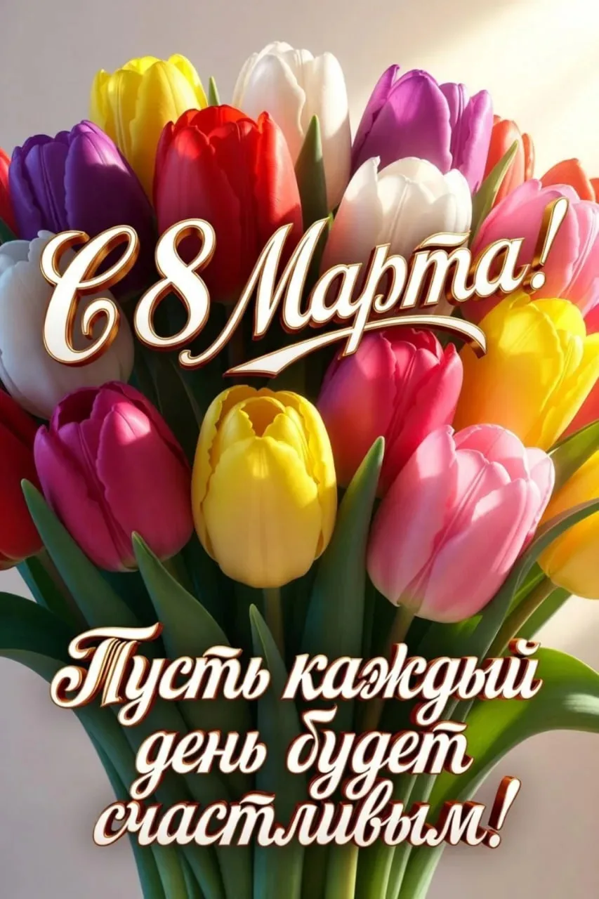 Милые женщины! От всей души поздравляю вас с Международным женским днём — 8 марта! Пусть этот праздник наполнит вашу жизнь теплом весеннего солнца, ароматом цветов и радостью пробуждающейся природы. Желаю, чтобы ваша красота сияла ярче весенних лучей, а душа наполнялась вдохновением и счастьем. Пусть рядом всегда будут любимые и дорогие сердцу люди, поддерживающие и вдохновляющие вас на новые свершения. Пусть удача улыбнётся каждому вашему начинанию, а сердце всегда остаётся открытым для любви и гармонии. Будьте счастливы, любимы и полны творческих идей! С праздником весны и очарования!