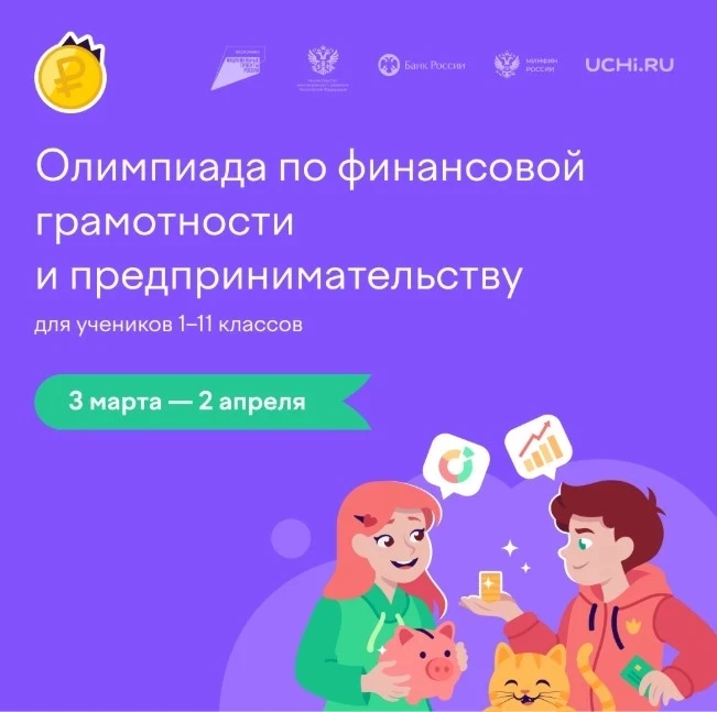 Ну Учи.ру проходит бесплатная всероссийской онлайн-олимпиада по финансовой грамотности и предпринимательству, в которой могут принять участие дошкольники и ученики 1–11 классов. Состязание проводится в рамках Стратегии повышения финансовой грамотности до 2030 года и национального проекта «Эффективная и конкурентная экономика» при поддержке портала «Мои финансы». Партнеры — Банк России, Министерство финансов Российской Федерации и Министерство экономического развития Российской Федерации.