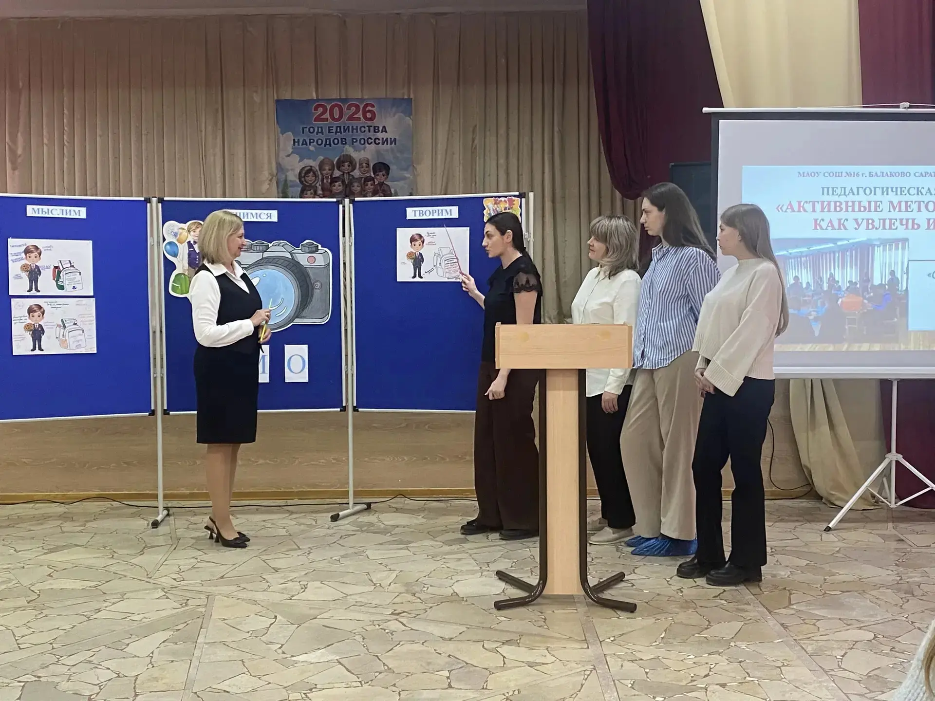Главная цель мероприятия — помочь начинающим специалистам найти ответ на вечный вопрос: как сделать урок не просто источником знаний, но и пространством для увлеченности и развития? Свой ответ на этот вопрос представила команда педагогов школы № 16: Карпова Ю. Б., Фисивная Л. П., Салихова Н.А, Кузнецова Г.В., Жулева И. Е.,- организовав презентацию опыта работы на тему «Активные методы обучения: как увлечь и научить»: