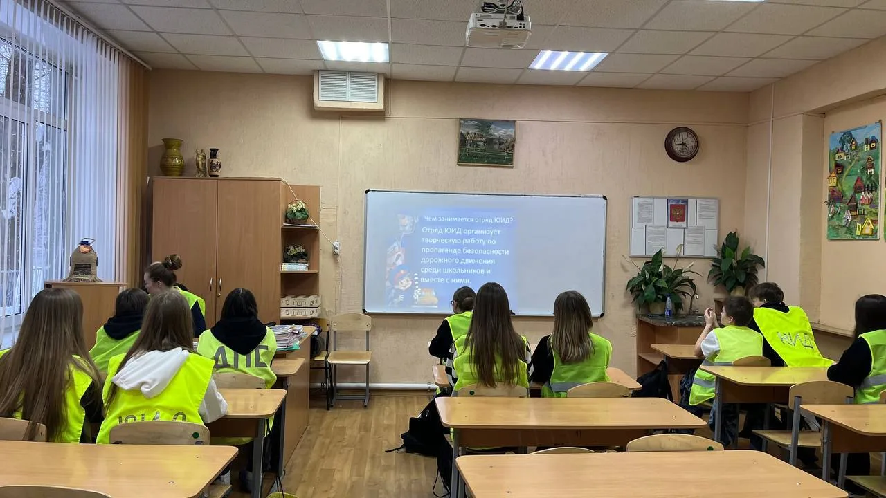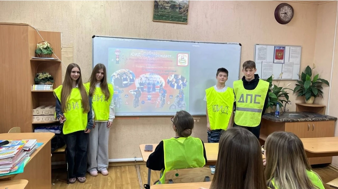 Особой частью занятия стала практическая прогулка: учащиеся в светоотражающих жилетах вместе с инспектором вышли на улицу и на реальном пешеходном переходе закрепили правила перехода дороги.