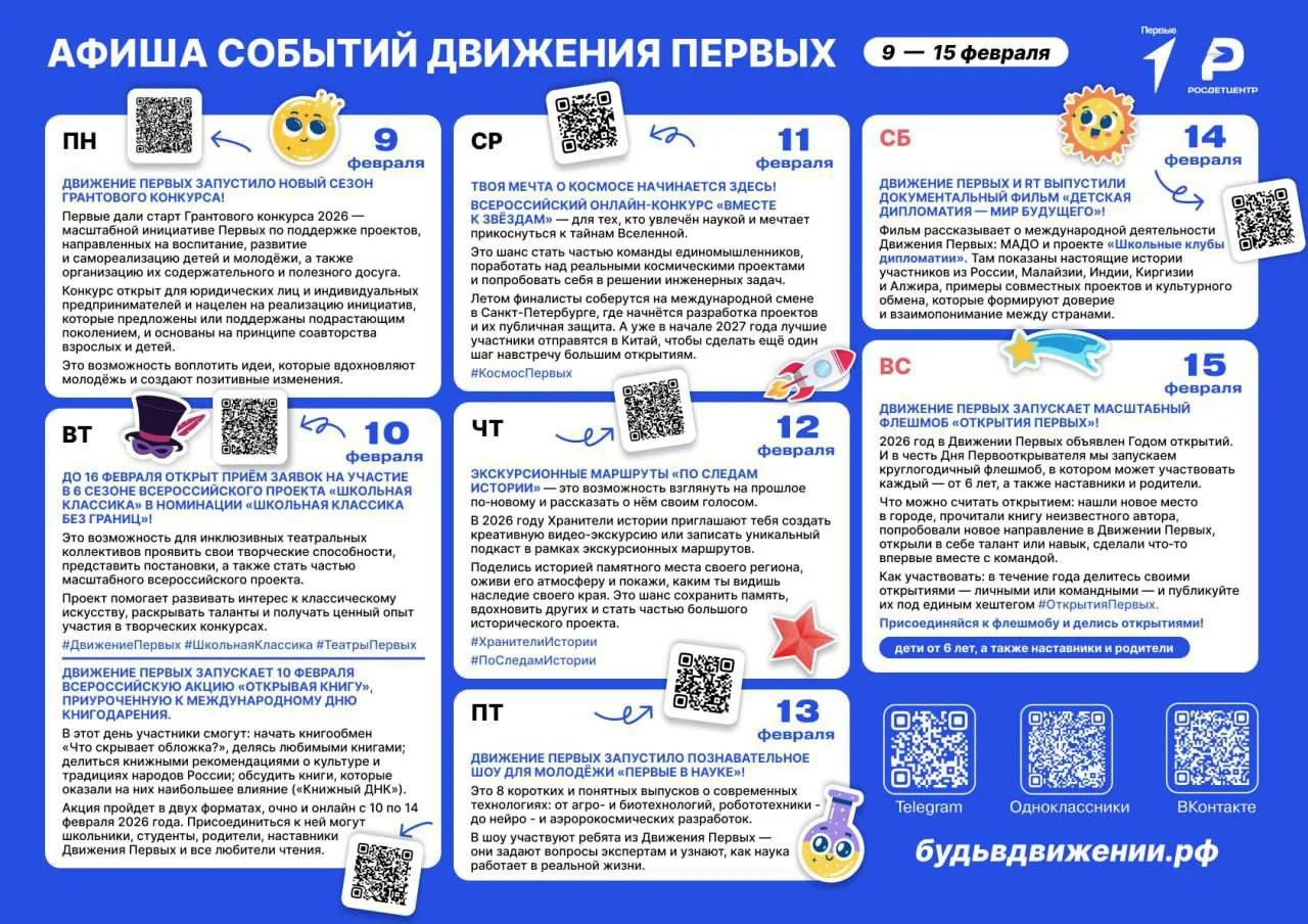 ✅Мы с большим удовольствием приглашаем вас присоединиться к мероприятиям, организованным Движением Первых! Это отличная возможность для общения с единомышленниками и обсуждения актуальных вопросов, которые волнуют наше общество.
