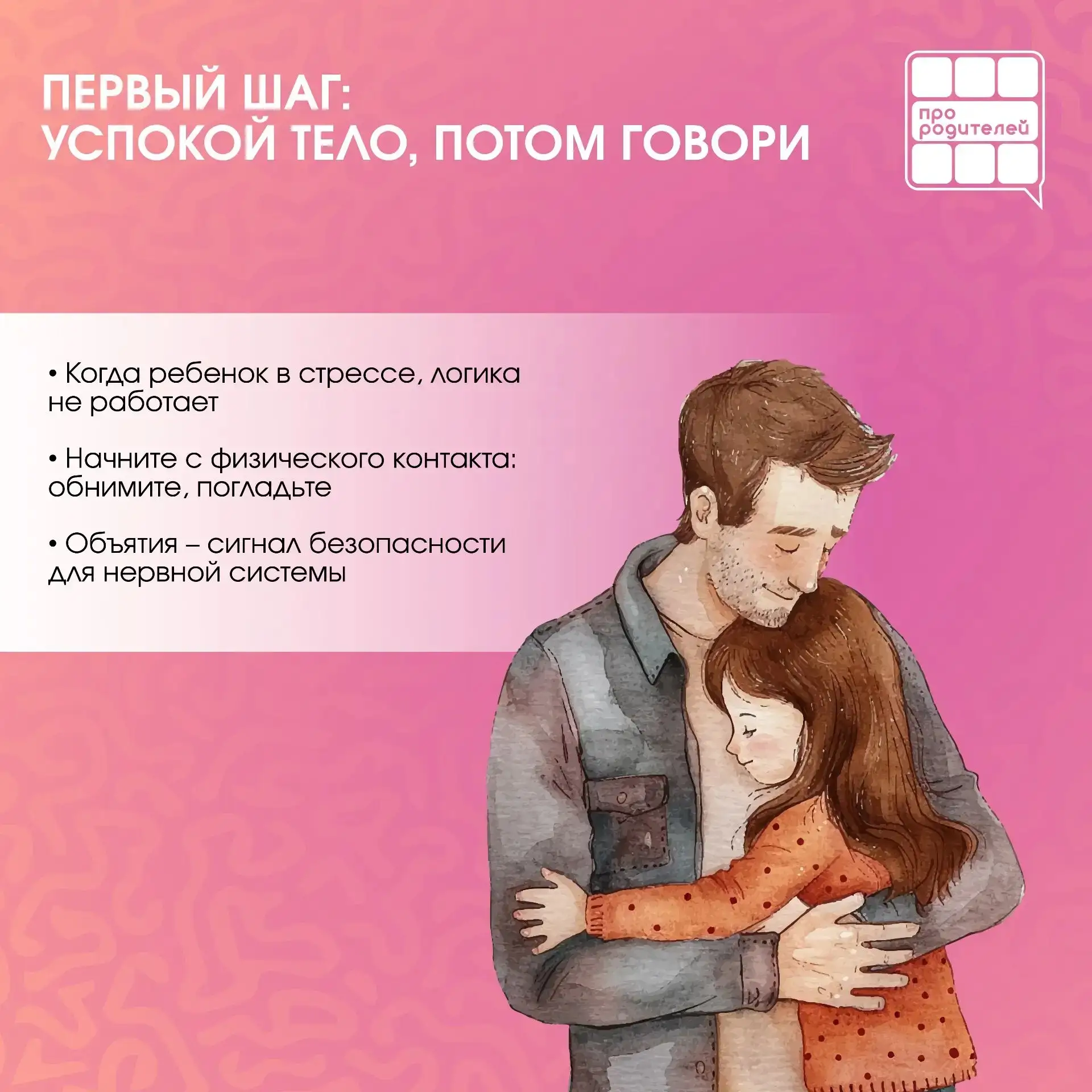 💡Наш эксперт, Любовь Юлпатова, педагог-психолог с огромным опытом, поделилась ценными рекомендациями, как родителю правильно действовать в такой ситуации. Всю информацию мы собрали в удобные информационные карточки.