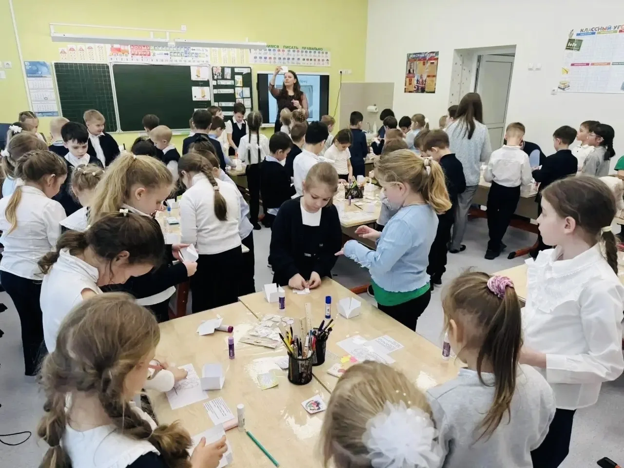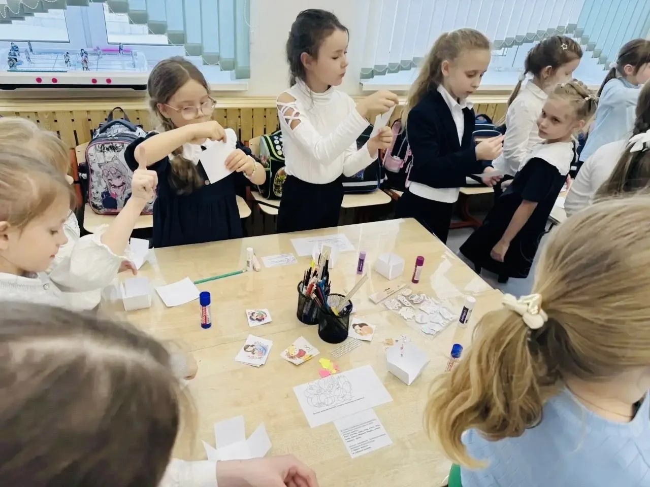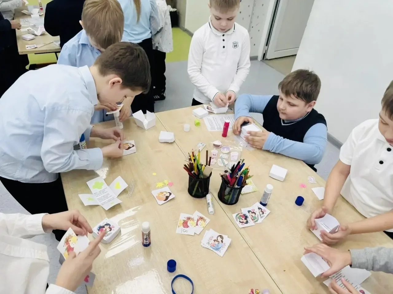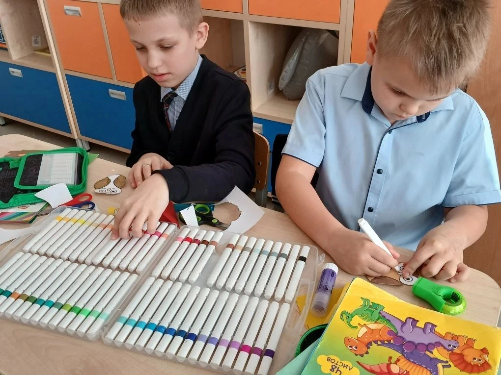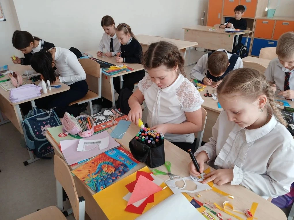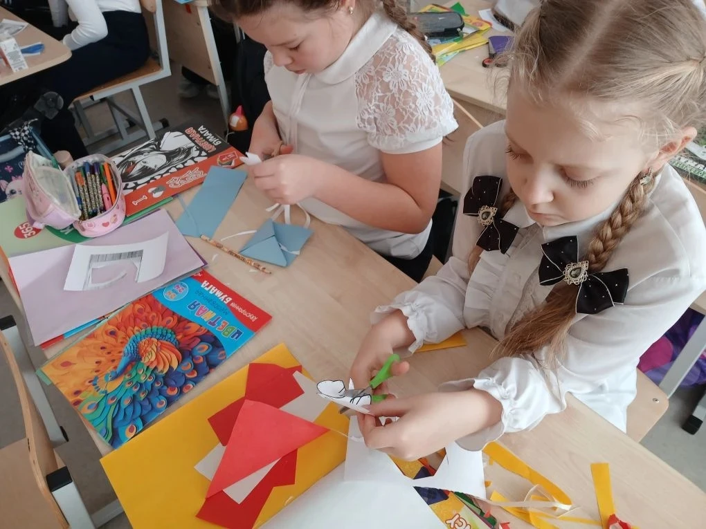 Под руководством Курмышовой Елизаветы Алексеевны и Стеничкиной Анастасии Олеговны ученики 1 «Г» и 1 «Д» классов погрузились в мир удивительного искусства — скрапбукинга. Первоклассники с огромным удовольствием создавали оригинальные книжки-шкатулки, украшенные цветами, лентами и сердечками. Каждый ребёнок вложил частичку своей души в своё изделие, превратив простую бумагу в настоящие произведения искусства.