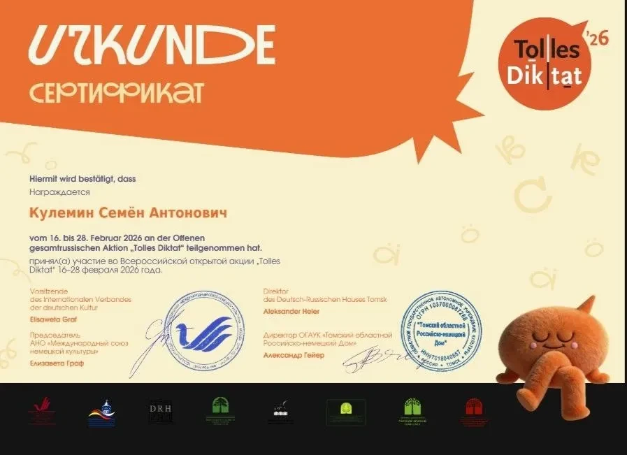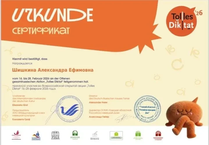 В нашей школе уже стало традицией каждый год принимать участие во Всероссийской открытой акции "Tolles Diktat". Диктант проводится с целью популяризации немецкого языка и развития культуры грамотного письма на немецком языке. География проекта продолжает расширяться, ежегодно к Акции присоединяются всё новые субъекты России, а также страны ближнего и дальнего зарубежья.