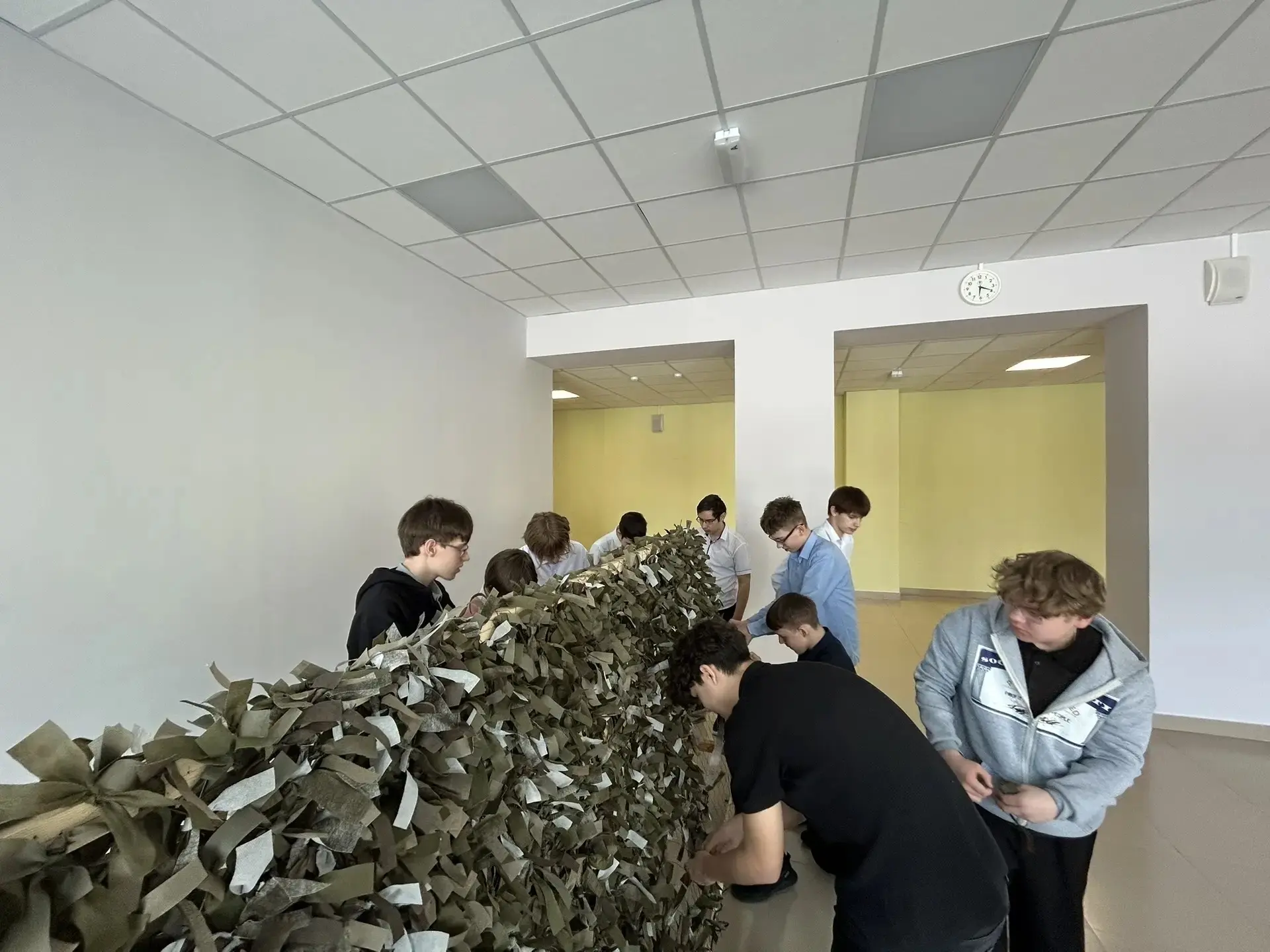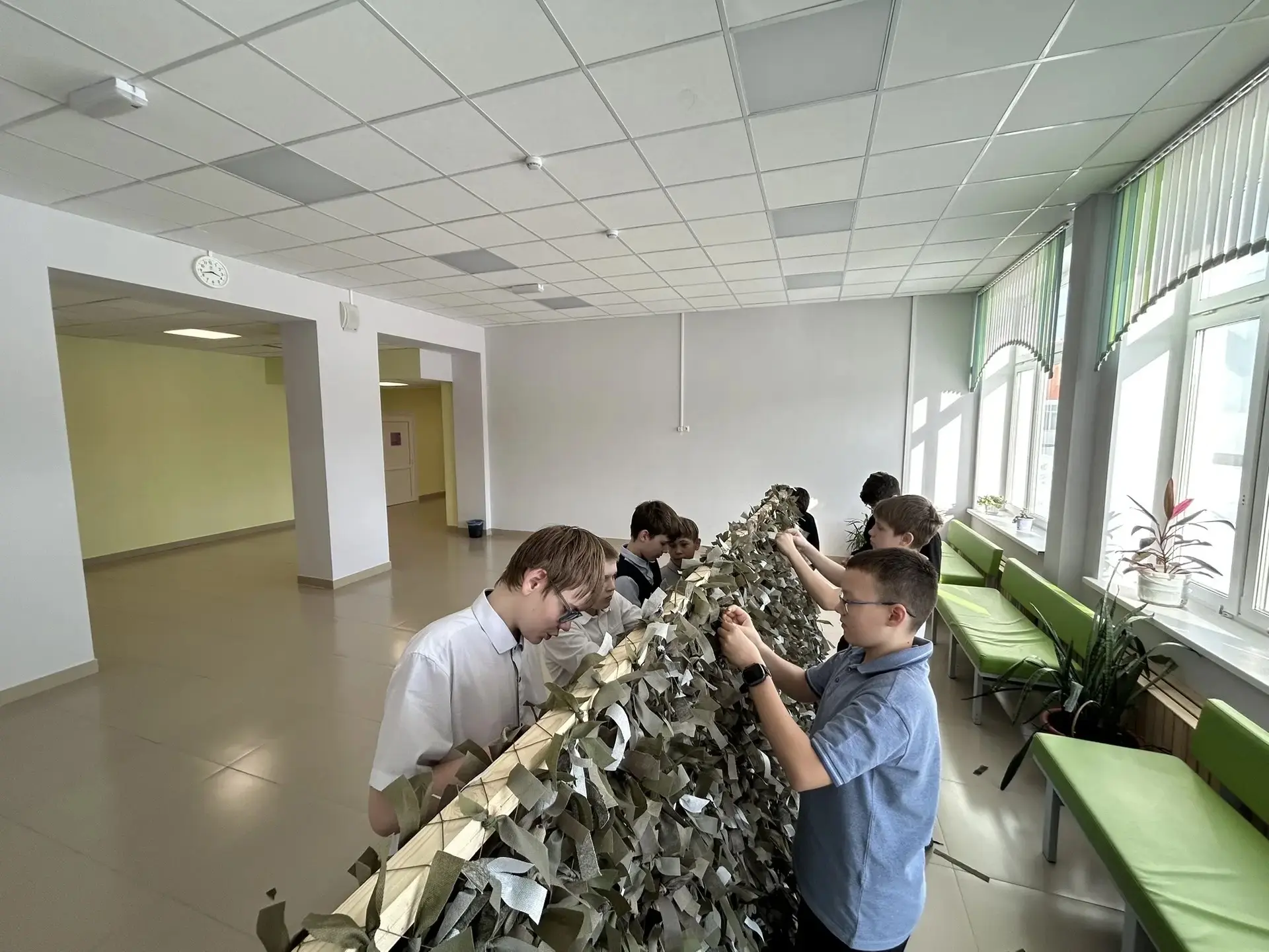 Ученики нашей школы вносят свой вклад в помощь нашим военнослужащим, плетут маскировочные сети и собирают гуманитарную помощь для Защитников, находящихся в зоне СВО. Техника плетения маскировочной сети несложная, но трудоёмкая.