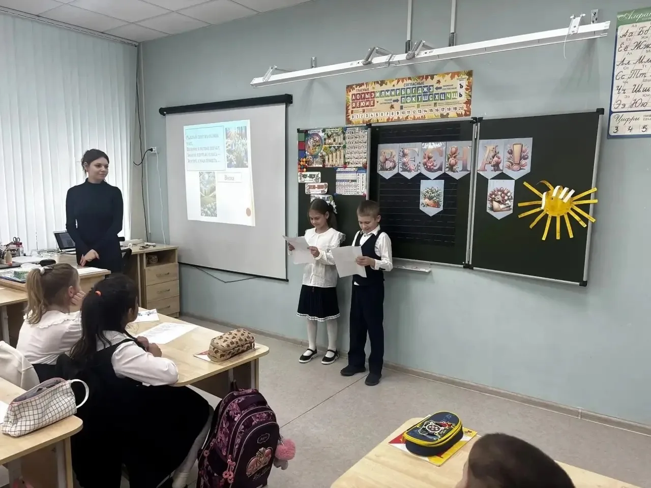 3 марта в рамках предметной декады в 1 «В» классе прошел открытый урок литературного чтения на тему: «В гости к Весне. Краски и звуки в стихах русских поэтов».