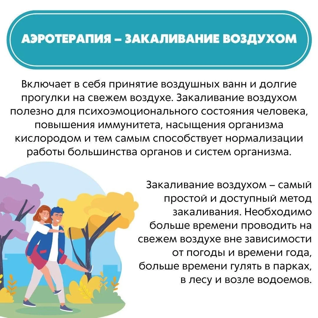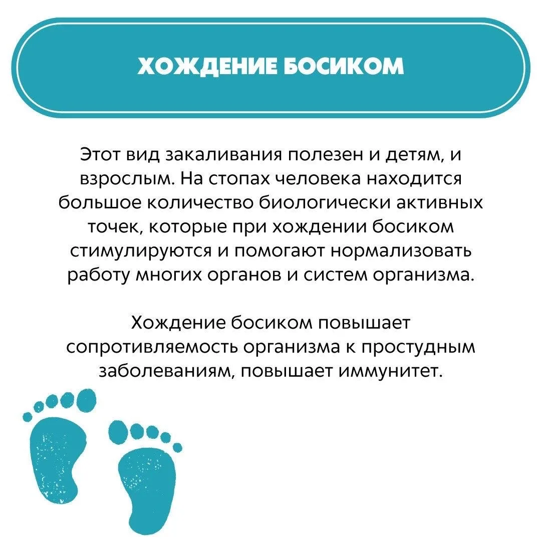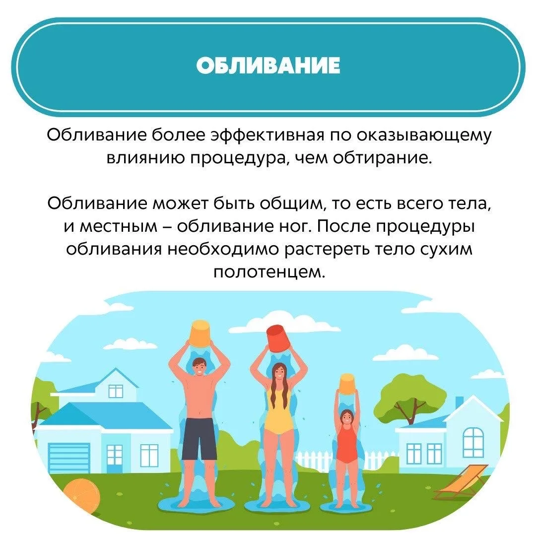 Существуют несколько видов закаливания в зависимости от проводимых процедур. Подробнее о каждом из них – в карточках✅