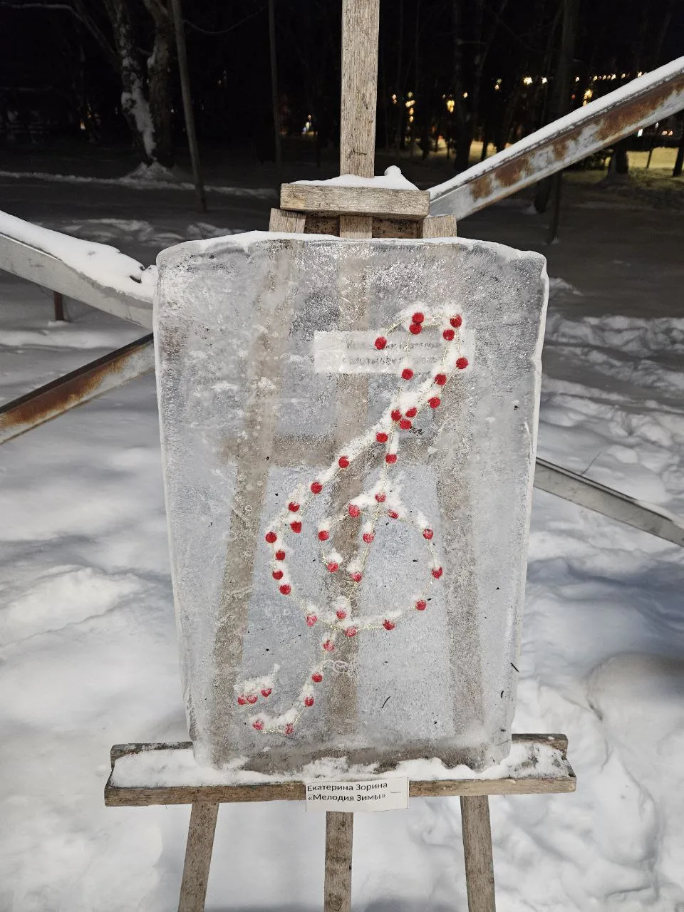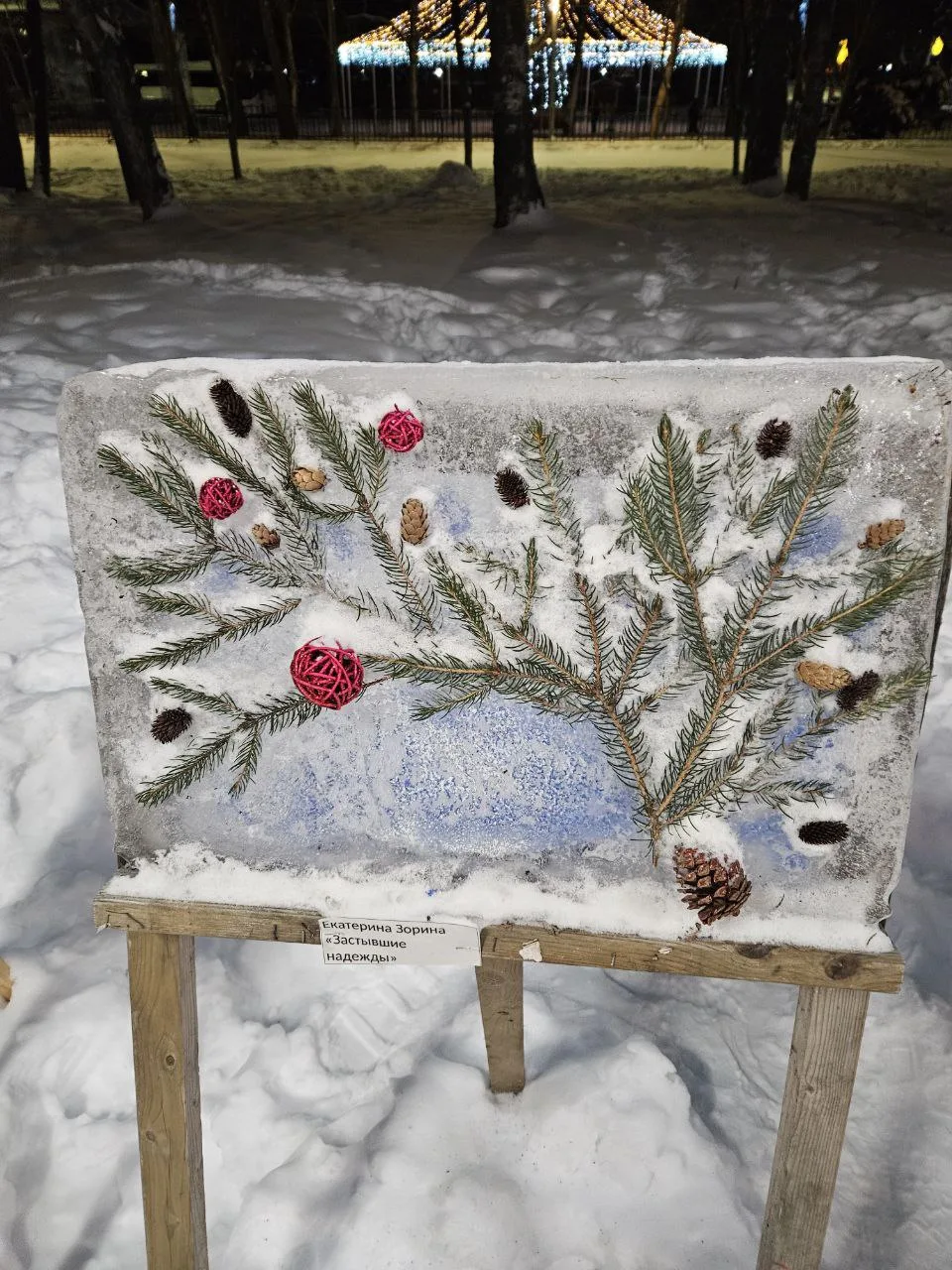❄️ Если этот субботний день вы решили провести в городском парке, то обязательно посетите выставку «Хрустальный вернисаж». Располагаются ледяные картины рядом с танцплощадкой.