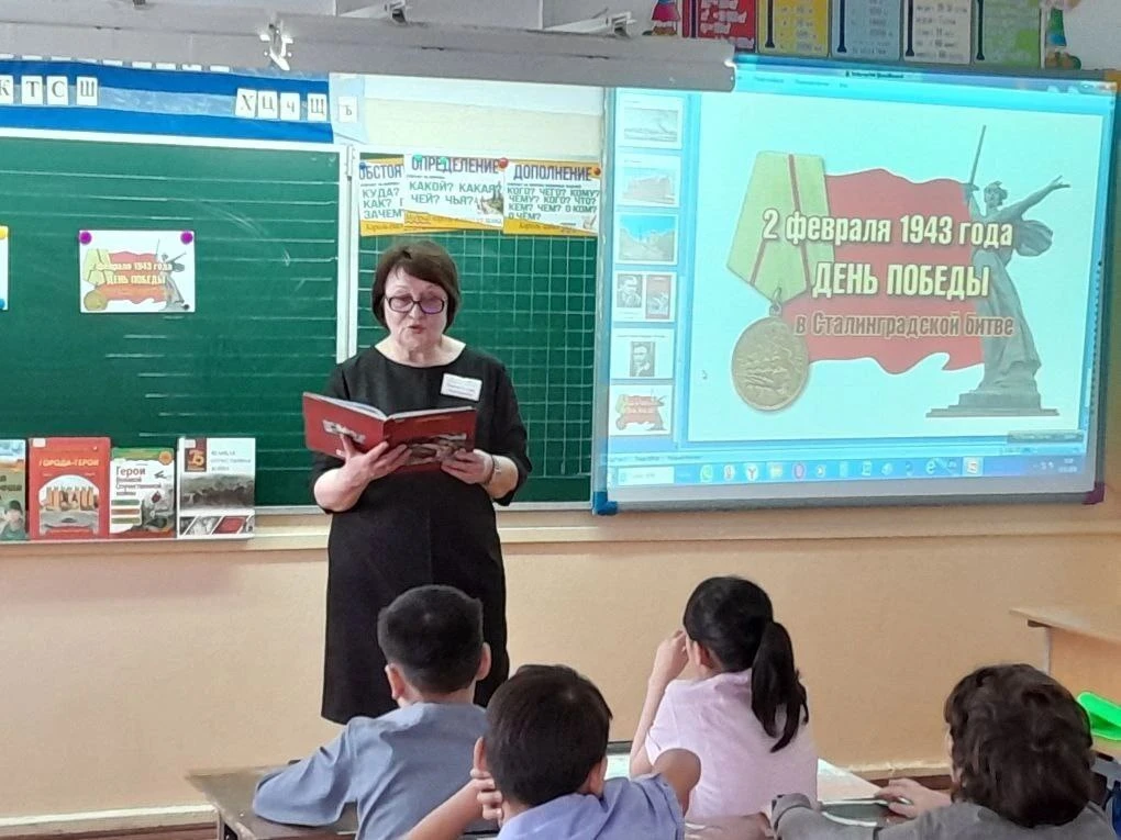Специалист библиотеки «Книга+» провела патриотический час «Битва за Сталинград» в рамках IX Всероссийской акции «200 минут чтения: Сталинграду посвящается», организованной ВМУК «Централизованная система детских библиотек». Участниками мероприятия стали учащиеся 4 В класса МАОУ СОШ № 31 города Южно-Сахалинска