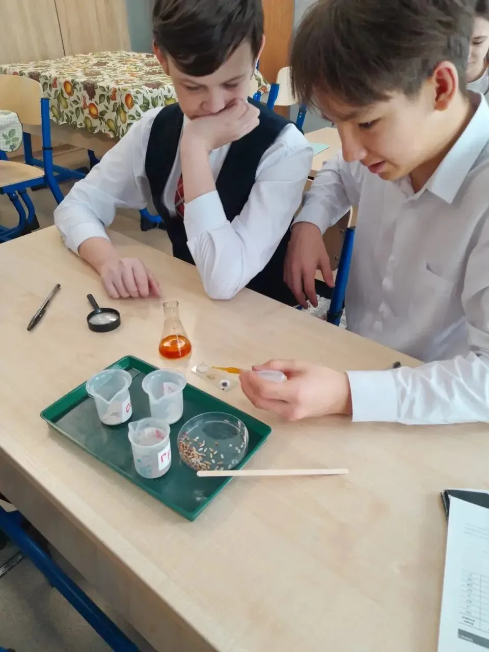 ▫️В 7Б классе прошел бинарный урок - технология+биология🧑🍳Сначала изучили различные крупы, и какие блюда из них готовят. Остановились на приготовлении гречневой каши👍🏽 Через несколько минут надели фартуки и шапочки, и на кухне закипела работа. А пока каша варилась, занялись экспериментами по биологии😁